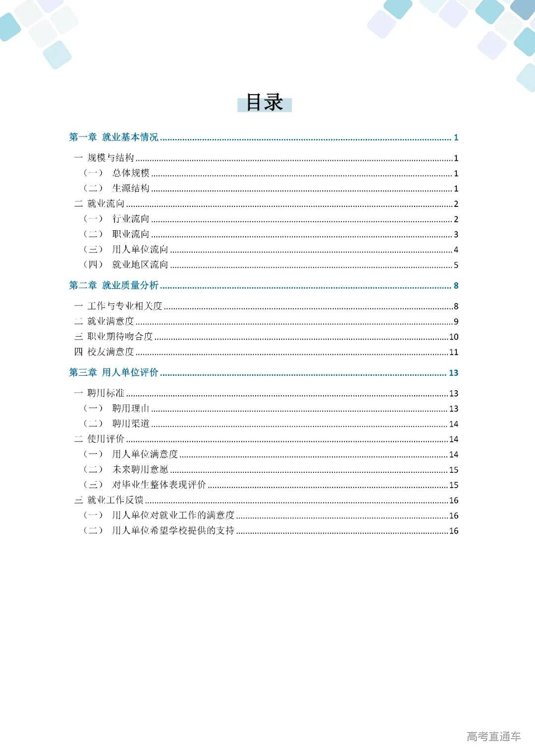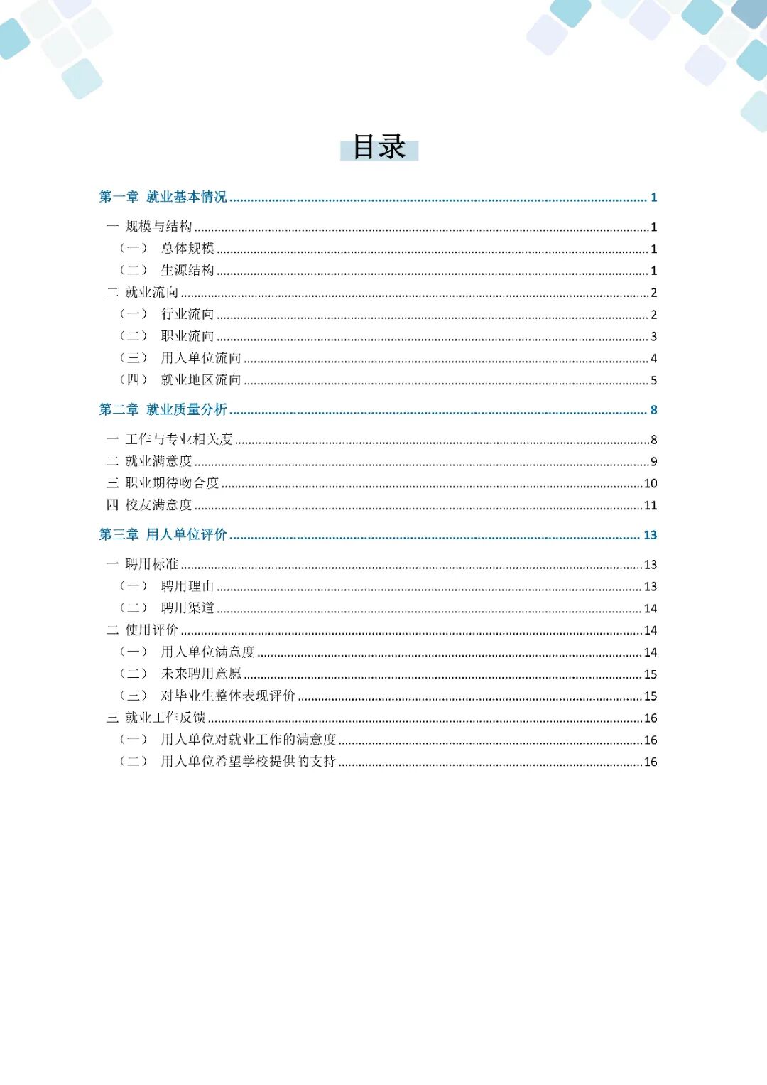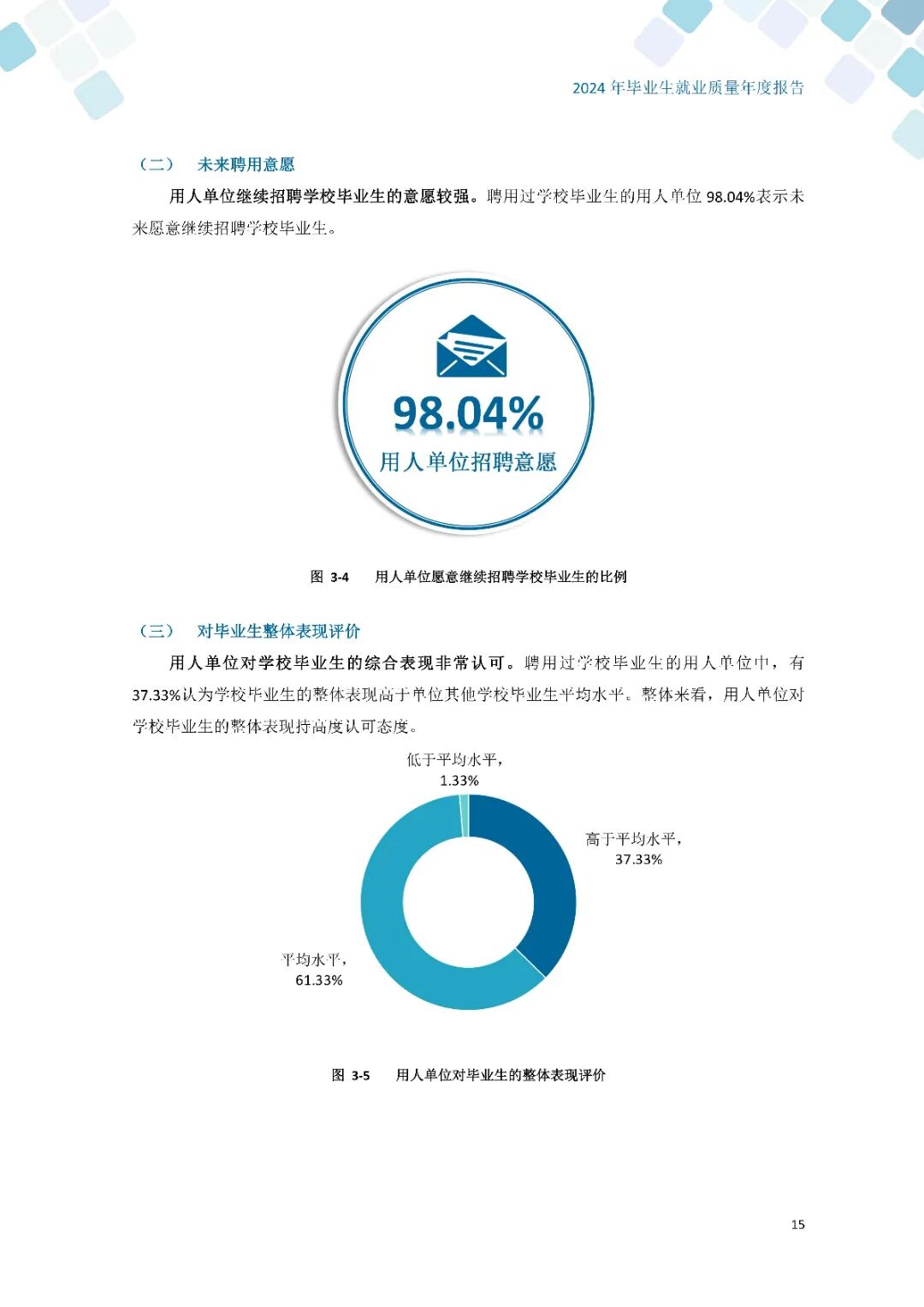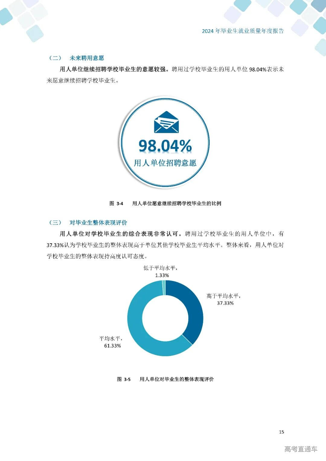 用人单位:政府机构/科研或其他事业单位(43.36%)、民营企业/个体(43.03%)、国有企业(10.01%)。就业于300人及以下中小型用人单位的比例为 62.56%。
