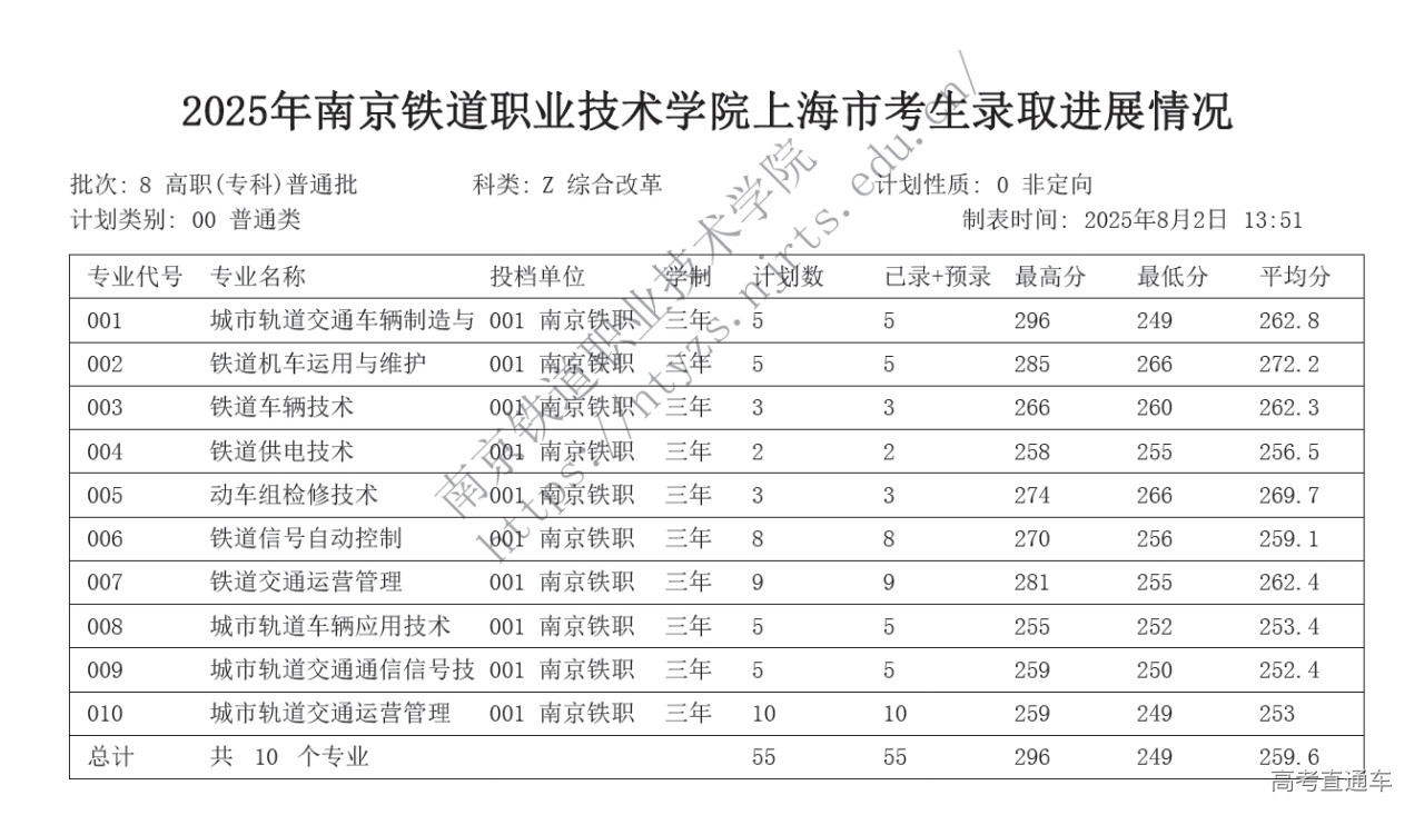 2025年南京铁道职业技术学院上海市考生录取进展情况