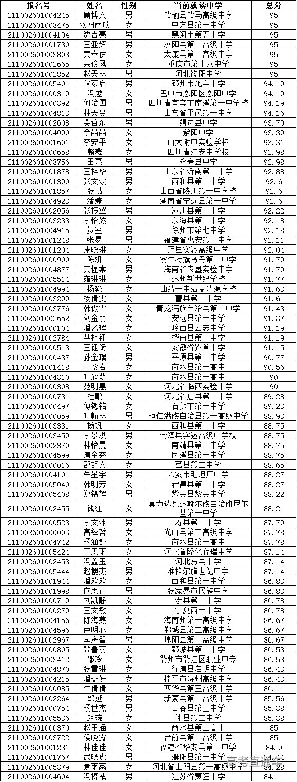 根据《北京中医药大学2021年杏林计划招生简章》,经我校招生工作领导小组审议决定,现将我校2021年杏林计划入选资格考生名单公示如下(还需经阳光高考平台公示无异议)。未在名单中的考生可登录报名系统查看是否通过初审或初审通过后的评价成绩(未通过初审的考生没有评价成绩)。