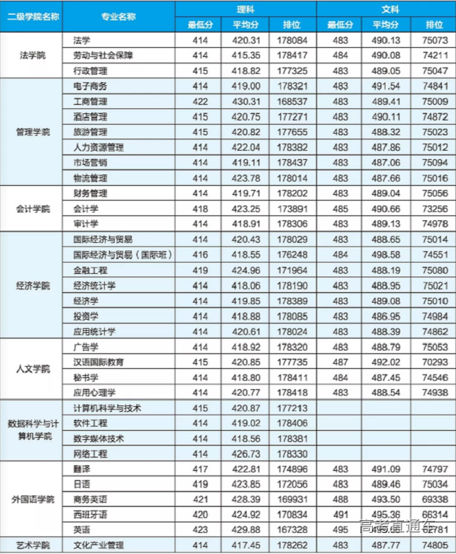 2019年广东省各专业最低分数以及排位