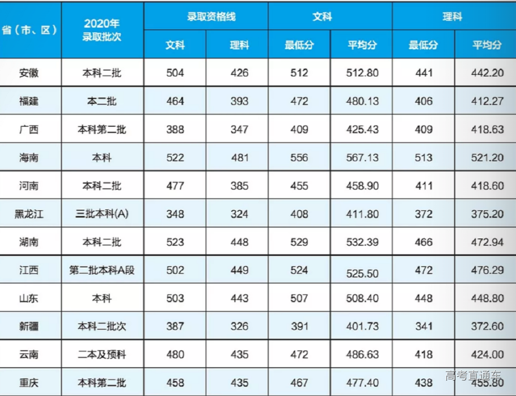 注:各省(市、区)录取批次以2020年公布的批次为准。