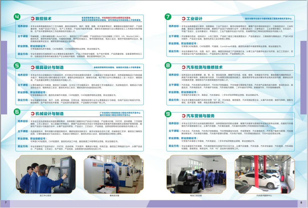 现有设施先进、功能齐全的校内实训基地19个,下属实验室、实训室、计算机室共83个。其中,中央财政扶持的职业教育实训基地2个:电子电工与自动化技术职业教育实训基地、数控技术专业先进制造技术实训基地;省级实训基地8个:机电维修实训基地、电子信息工程技术实训基地、数控技术实训基地、机电设备维修与管理高技能人才培养基地、模具设计与制造专业技术技能人才培养基地、软件技术专业技术技能人才培养基地、机电技术公共实训中心、工业机器人公共实训中心;省级工程技术研究中心1个:广东省绿色与智能制造一程技术研究中心;市级工程技术研究中心3个:韶关市制造工程技术研发中心、韶关市自动化工程技术研发中心、韶关市数字化设计与增材制造工程技术研究中心,广东省青少年科技教育基地1个。
