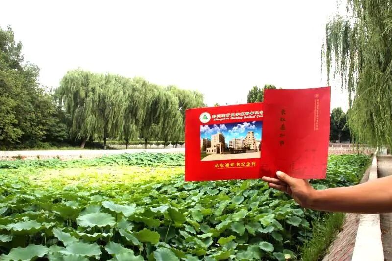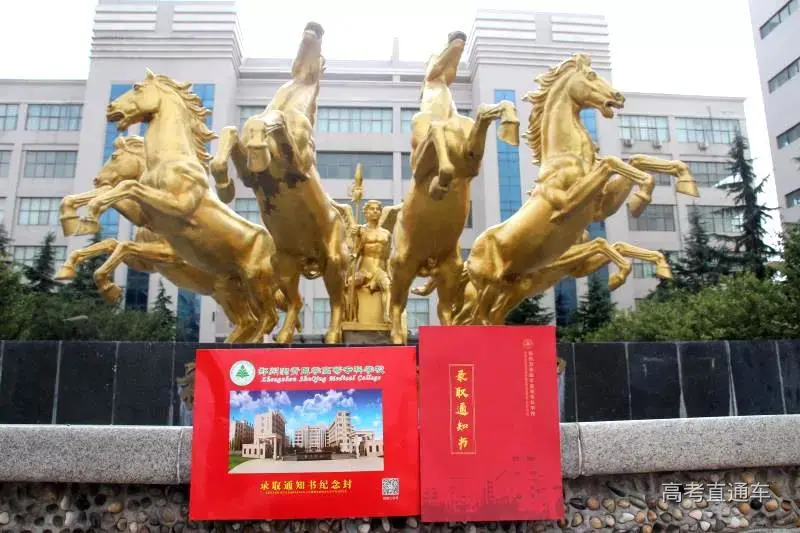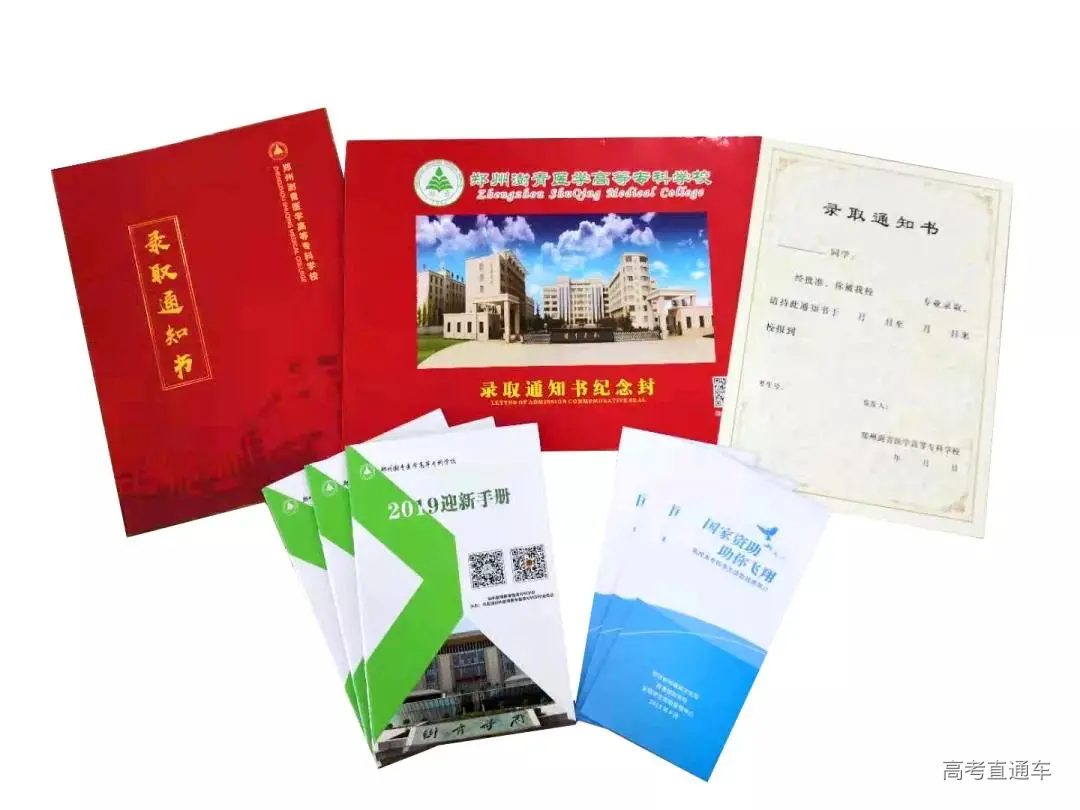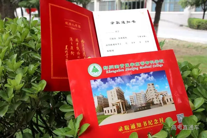 录取通知书的信封以镶嵌着“澍青学府”四个金色大字的校门为背景,大门正对的是图书馆,右侧是河南省品种最全、面积最大的医学博物馆,左侧是校医院及实验实训楼群,处处体现着医学院校的神圣及办学实力的雄厚。