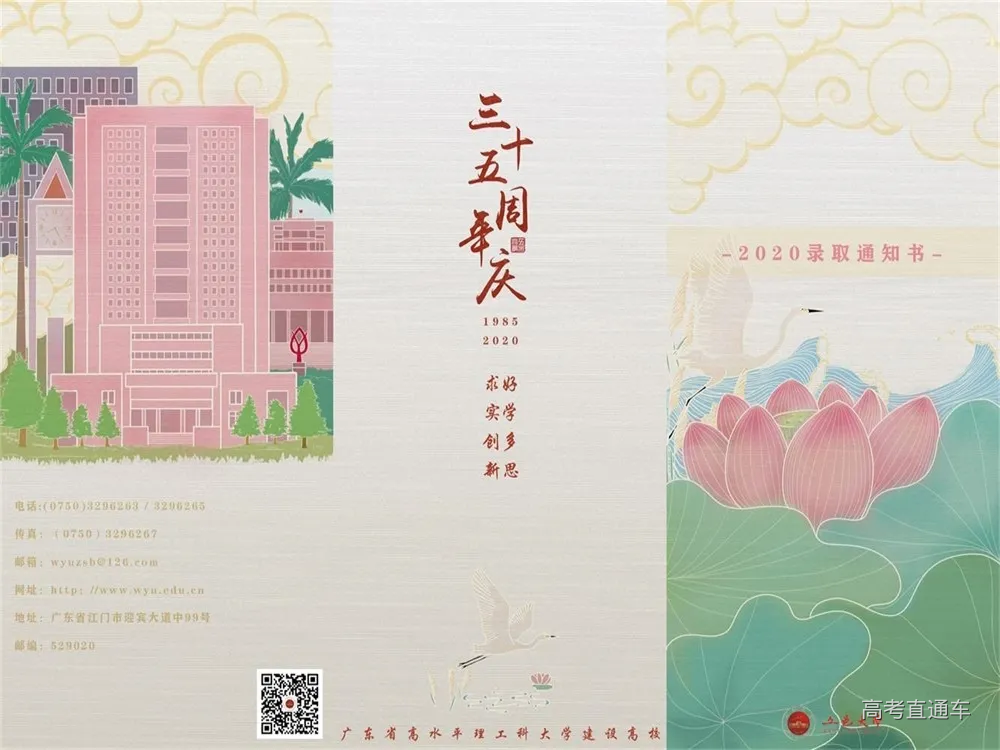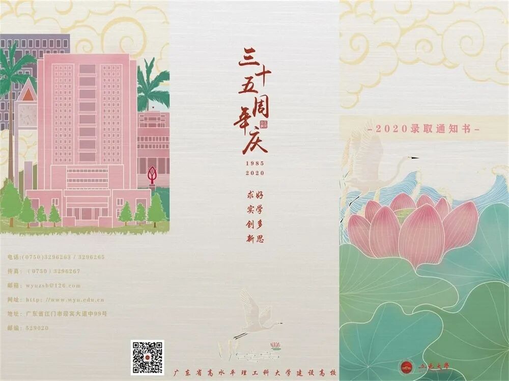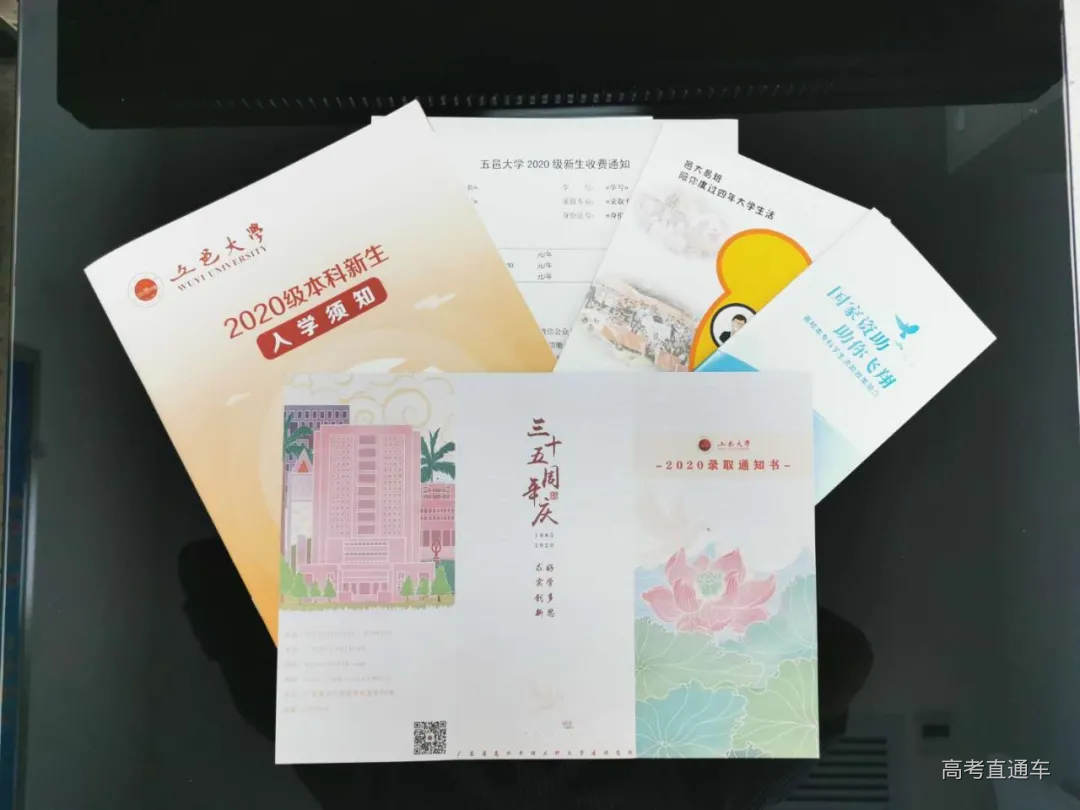 我校通知书快递包内容包括:录取通知书、新生交费通知单、2020级本科新生入学须知册子(内含《五邑大学2020级新生防疫指南》、《生源地信用助学贷款申请指南》、《大学生应征入伍优惠政策》等资料)、2020年《高等学校学生资助政策简介》折页、易班宣传折页。