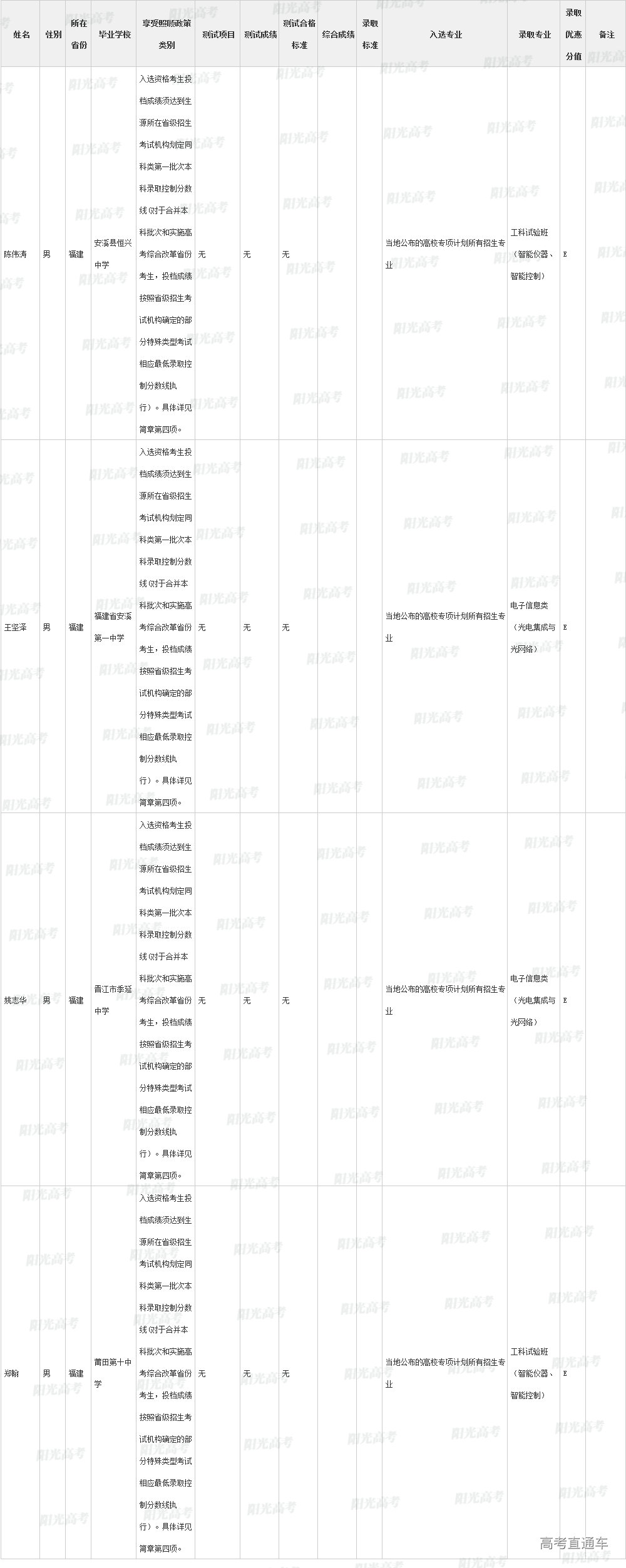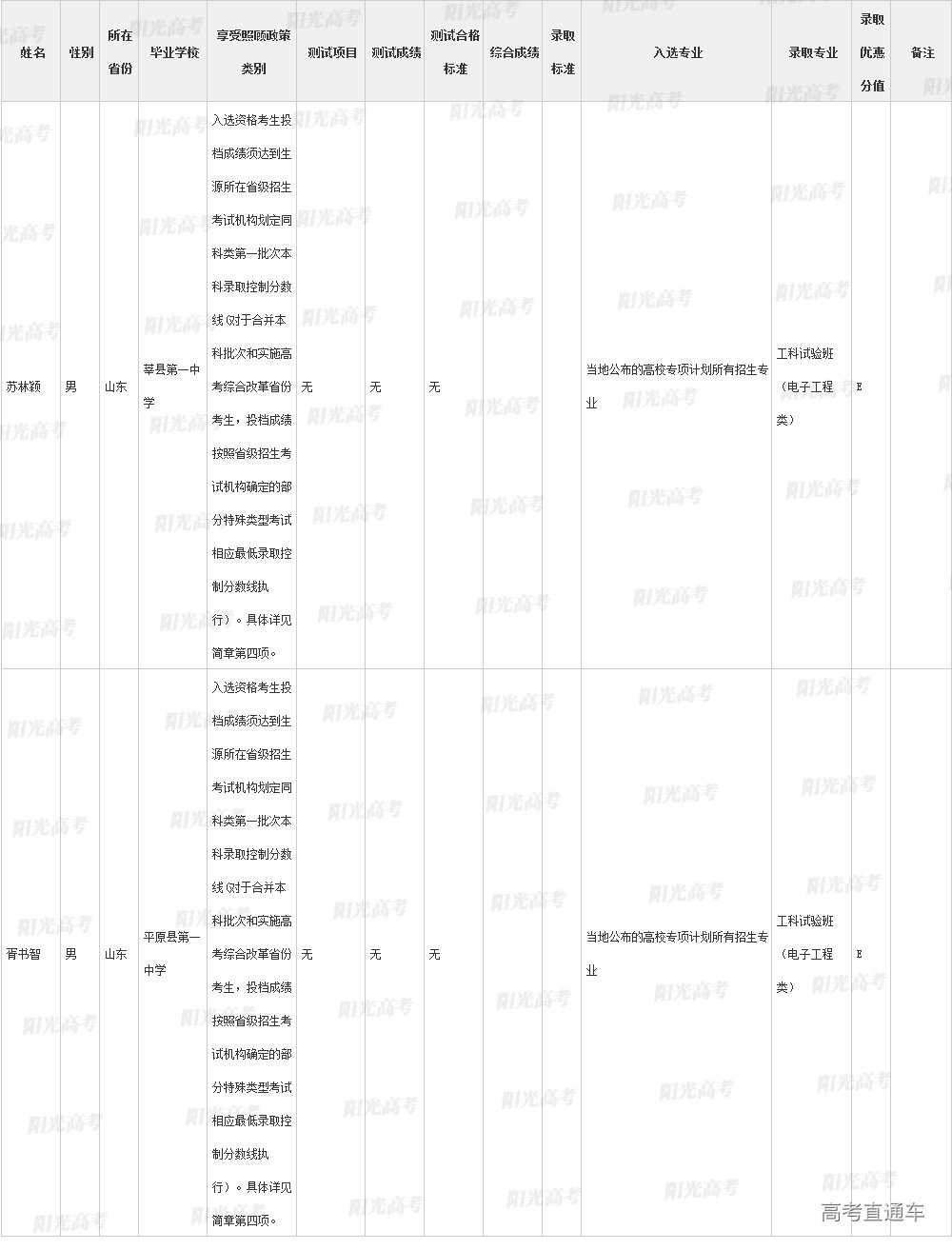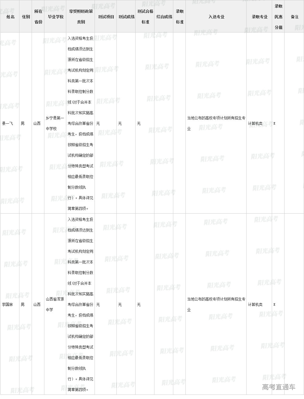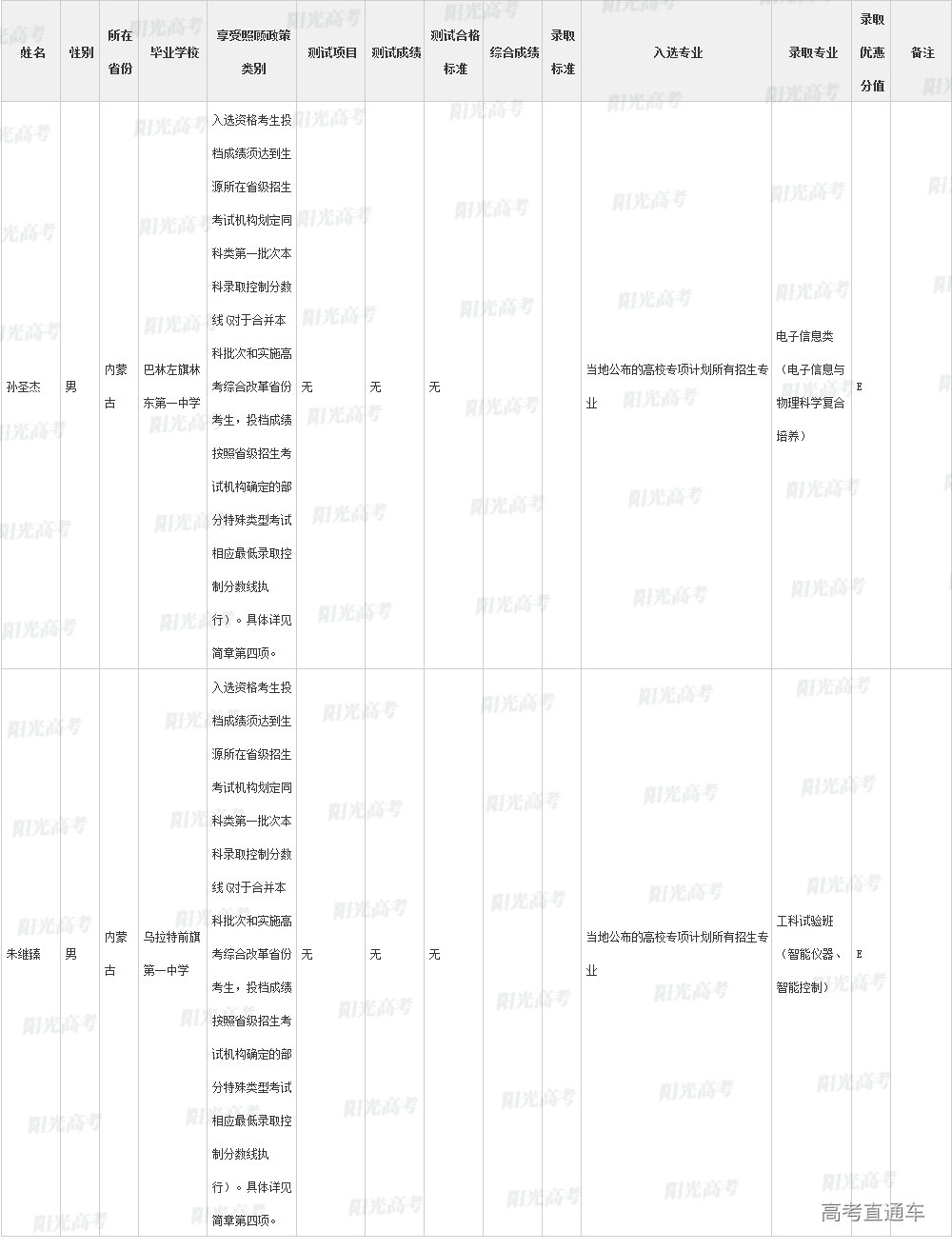 ②入选考生达到生源所在省份一本批次录取控制分数线即予以录取的,以“C”标注;也可是"C"+"数字",表示一本批次录取控制线上多少分录取,如C20表示一本批次录取控制线上20分录取;