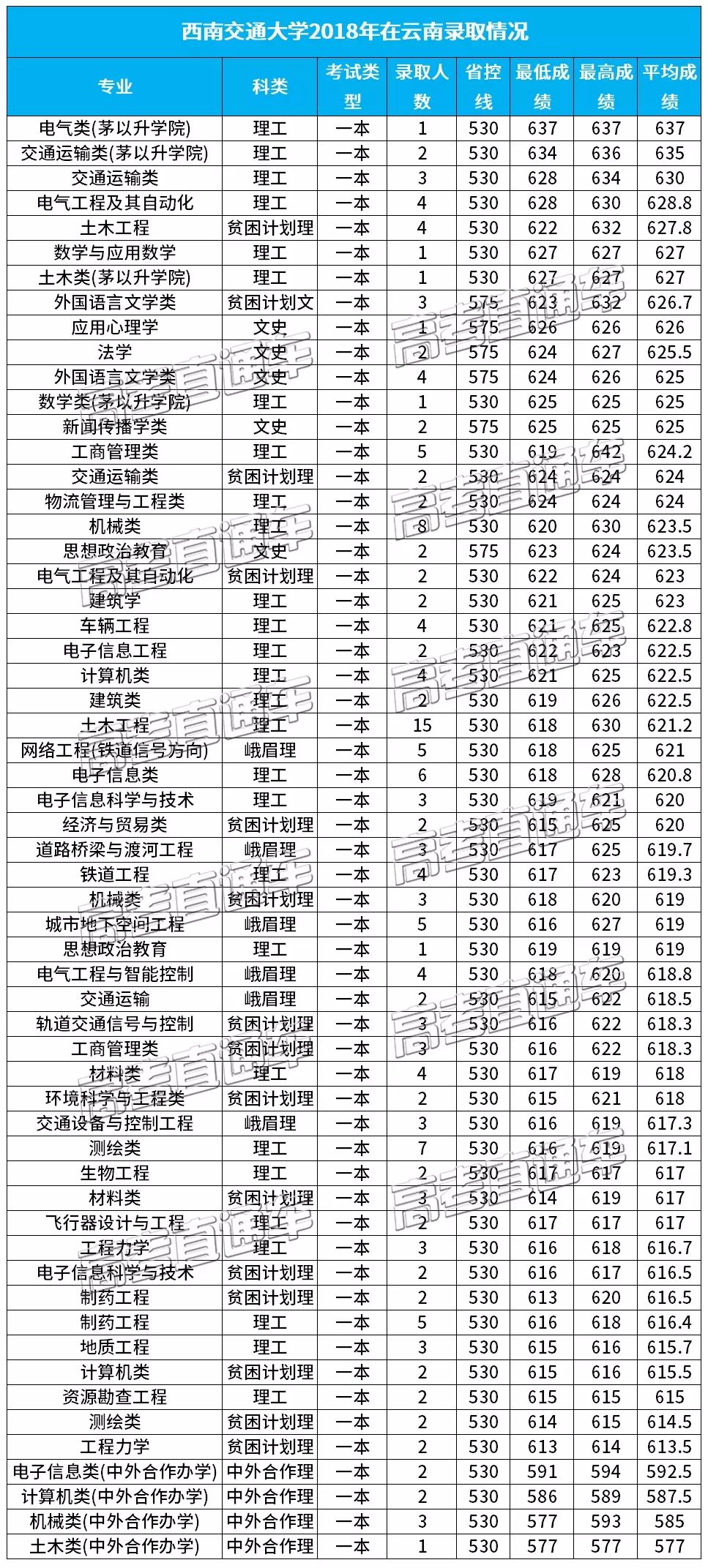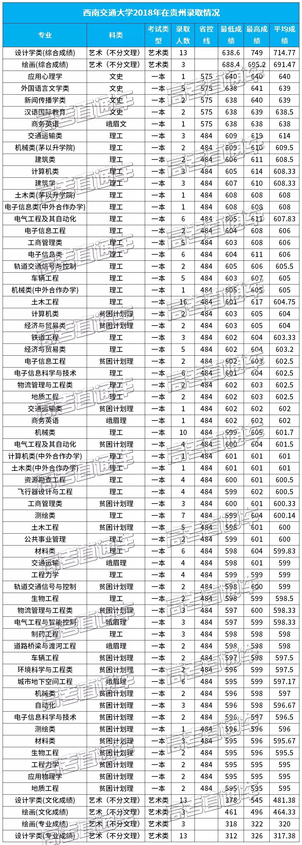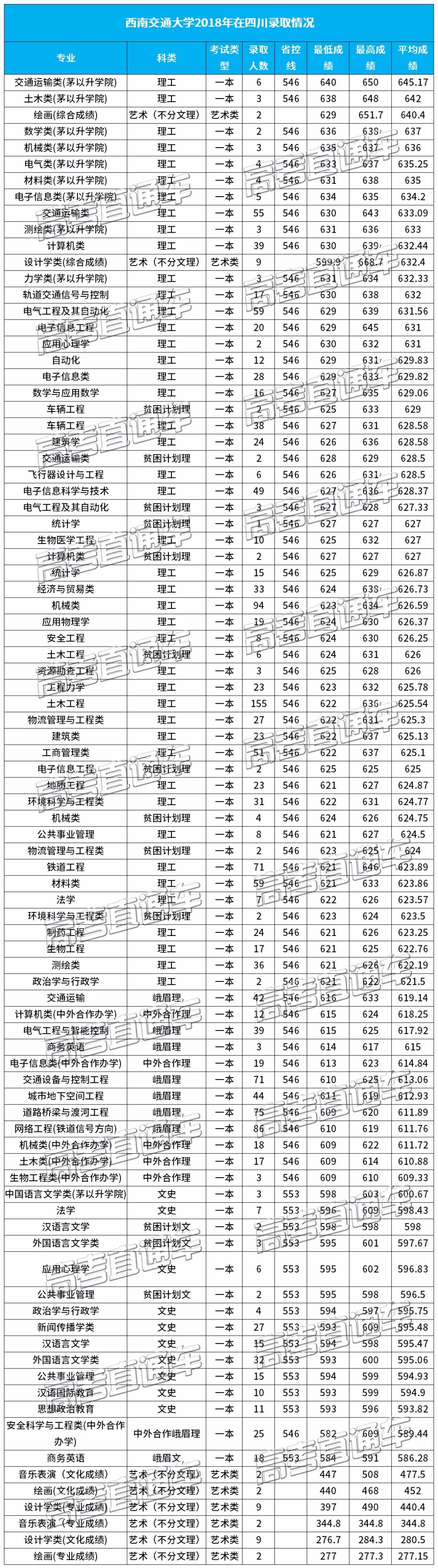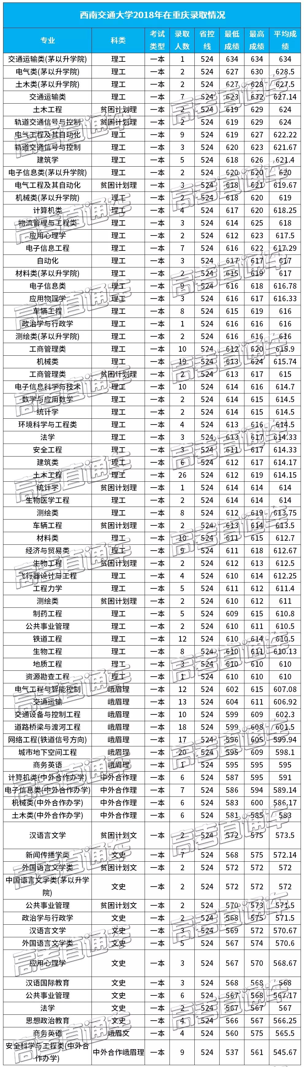 小西同样为大家整理到了西南交通大学2018在西南各省市的分专业录取分数线: