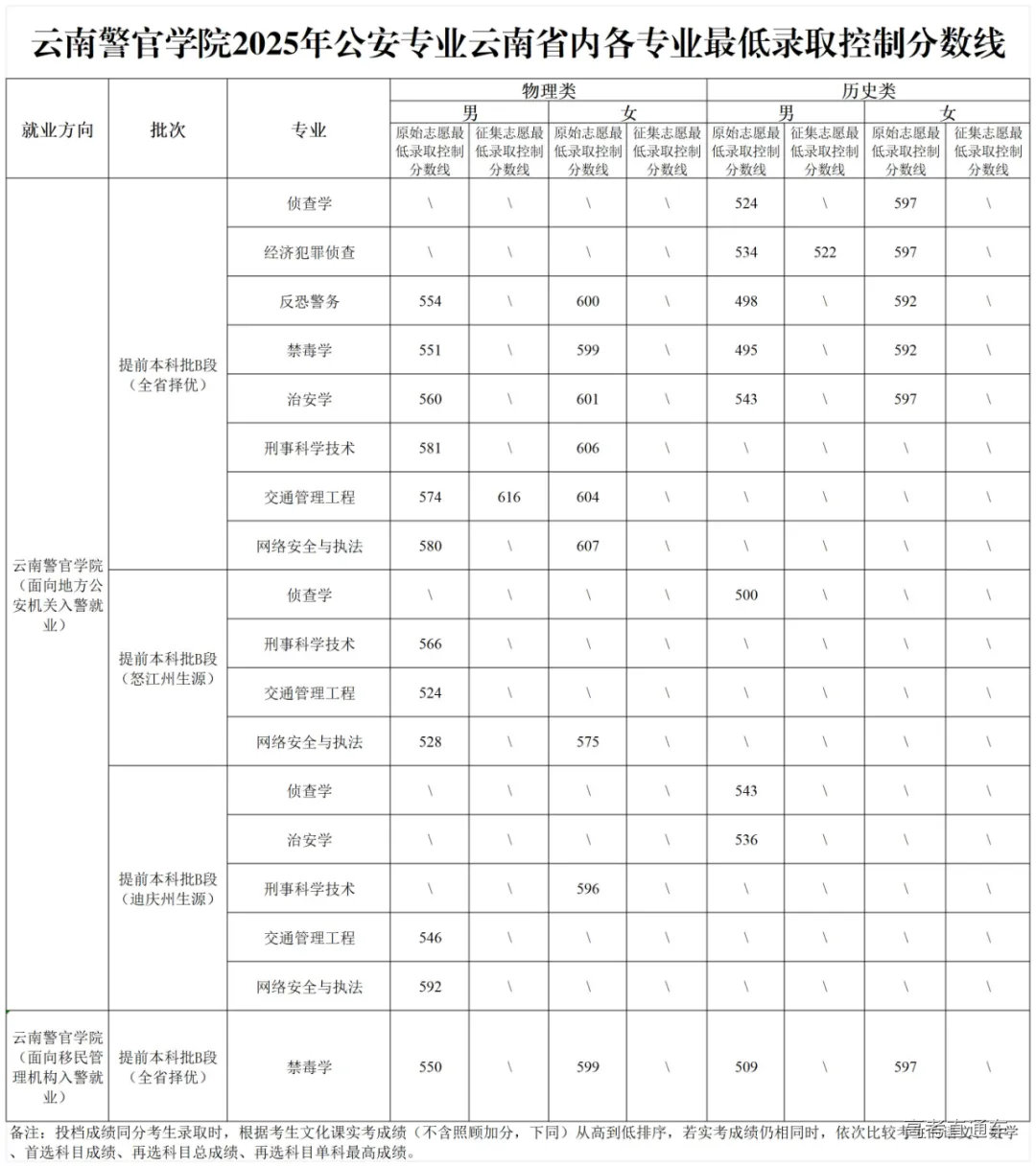 云南警官学院2025年省内公安专业最低录取分数线公布