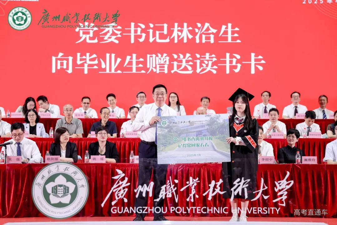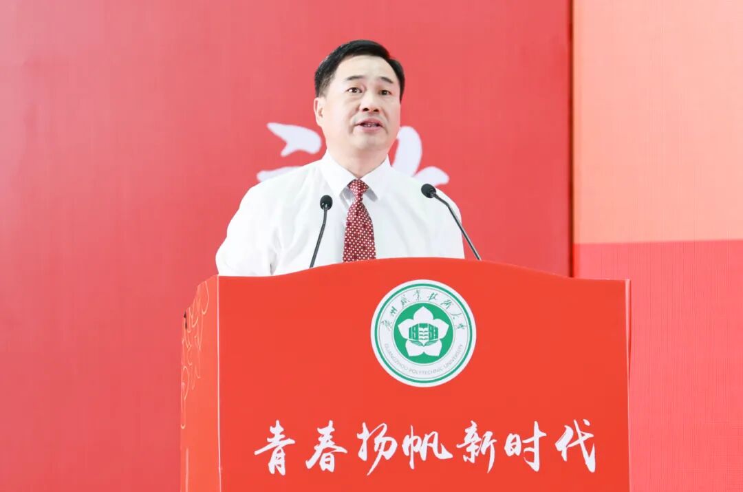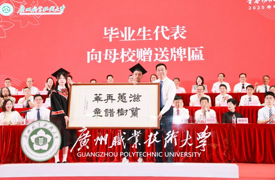 校长马仁听在讲话中说,三年前,同学们带着青涩与向往踏入广州番禺职业技术学院;今天,大家怀着坚定与梦想,以“广州职业技术大学首届毕业生”的身份扬帆远行。从番职院到广职大,在这段更名历程中,同学们不仅是学校发展的亲历者,更是学校改革发展的参与者和推动者。 离别在即,他送给大家“三力”,愿这三股力量,助同学们“扬帆起航、历经磨练、马到功成”: 一是坚守匠心,涵养定力,做技能报国的实干者。 二是勇于创新,精进能力,做产业发展的弄潮儿。 三是脚踏实地,淬炼耐力,做美好生活的奋斗者。 他希望同学们带着母校的嘱托、师长的教诲、同窗的情谊,满怀信心与豪情,以精湛的技艺为舟,以创新的精神为帆,以坚韧的意志为桨,在时代的大潮中乘风破浪,驶向成功的彼岸,书写无愧于时代、无愧于青春、无愧于“广职大首届毕业生”的壮丽篇章!勇敢地走出一条属于你们自己高质量发展的未来之路!