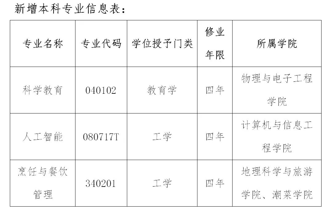 近日,韩山师范学院发布2025年十大新闻,其中提到: 根据教育部公布的2024年度普通高等学校本科专业备案和审批结果及2025年本科层次职业教育专业设置备案结果,我校新增“科学教育”和“人工智能”普通本科专业及“烹饪与餐饮管理”职业本科专业,其中“烹饪与餐饮管理”是我校获批的第一个职业本科专业。至此,我校共有62个本科专业(其中61个普通本科专业,1个职业本科专业)。