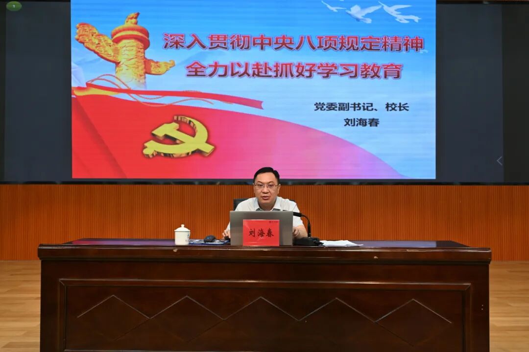 5月7-9日,学校举办深入贯彻中央八项规定精神学习教育读书班。7日上午,读书班开班式暨党委理论学习中心组(扩大)学习会在伟南国际会议中心举行,学校党委副书记、校长刘海春作开班动员讲话并作专题党课。学校领导林广文、陈亚林、黄景忠、郑耿忠、陈海忠参加读书班。读书班学员通过专题党课、辅导讲座、专题片、分组研讨等形式进行集中学习。