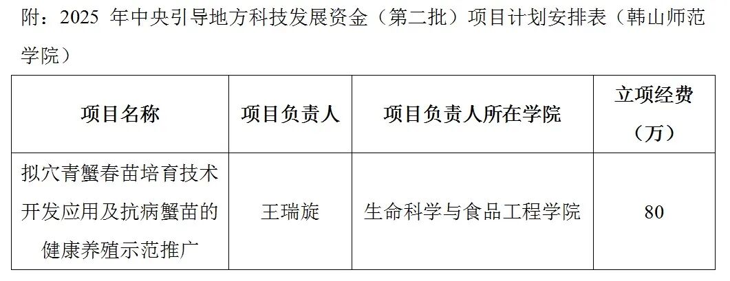 我校在2025 年中央引导地方科技发展专项资金(第二批)项目计划中获得立项1项,项目负责人系我校生命科学与食品工程学院教授王瑞旋。 据悉,该类项目为2025年科技成果入县达镇促进城乡区域协调发展专项中的科技成果入县达镇助力“百千万工程”项目。通过项目实施,有效解决地市区域共性科技问题和生产实践难题,示范带动产业提质增效,塑造产业发展新优势,惠及民生福祉,加快形成一批科技助力“百千万工程”示范性帮扶成果。