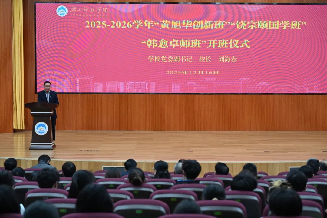 12月16日下午,学校首届“黄旭华创新班”“饶宗颐国学班”“韩愈卓师班”在伟南国际会议中心开班。学校党委副书记、校长刘海春,学校党委副书记林广文,学校党委常委、副校长郑耿忠出席开班仪式。刘海春指出,“黄旭华创新班”“饶宗颐国学班”“韩愈卓师班”是学校落实教育强国战略的关键举措,是百年师范底蕴的时代延续,更是深耕拔尖创新人才培养的全新探索。