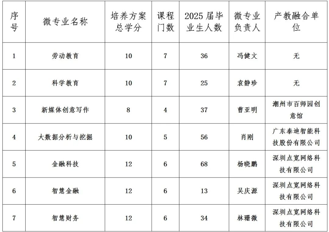 根据教育部公布的高校学生就业能力提升“双千”计划首批入库专业备案结果,我校报送的劳动教育等7个微专业成功入选,数量列全省本科高校第二。 入选的7个微专业涵盖急需紧缺型、应用技能型、交叉复合型三类,面向人工智能应用、数字营销、商务贸易等人才急需领域,充分发挥了“小学分、高聚焦、精课程、跨学科、灵活性”等优势,帮助学生补齐知识和技能结构短板。269名2025届毕业生通过修读课程学分,成功获得学校颁发的微专业证书,用人单位能够在学信网查询“微专业”认证和学习结果。