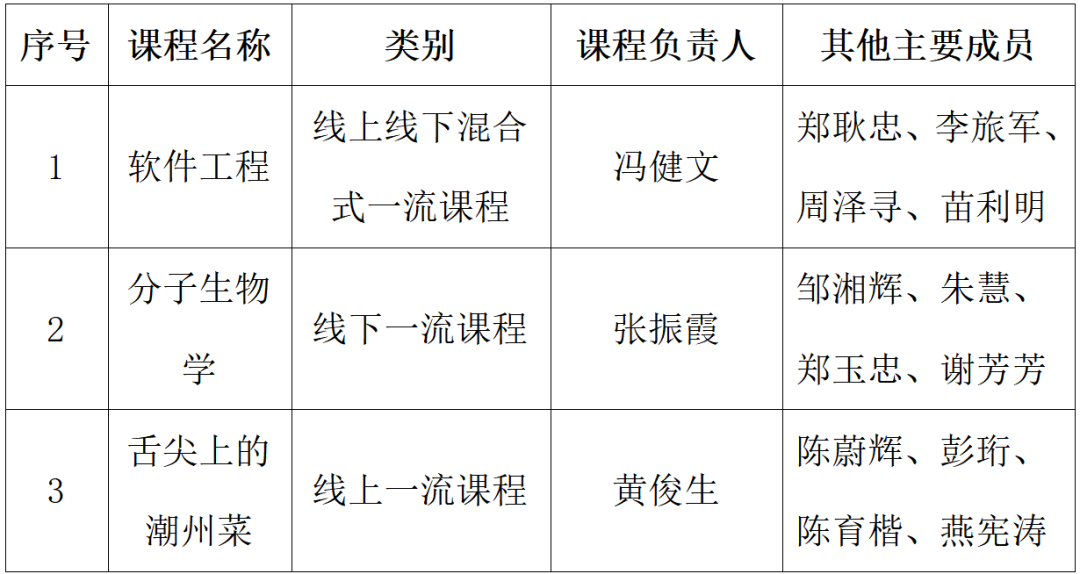 根据教育部公布的第三批国家级一流本科课程认定结果,我校3门课程成功入选。此次入选的课程,涵盖线上、线下、线上线下混合式等多个类别,是我校实现国家级一流本科课程零的突破,标志着我校本科课程建设水平再上新台阶。