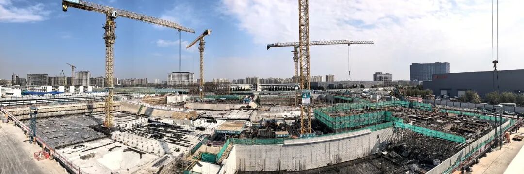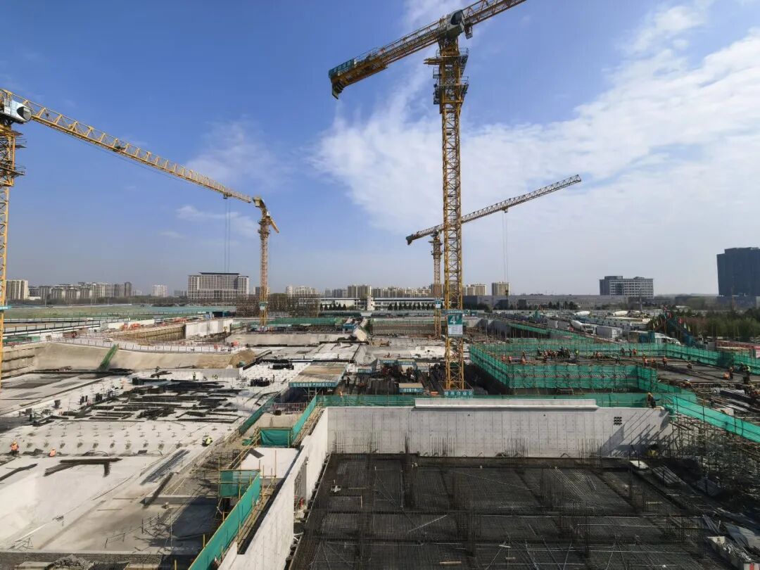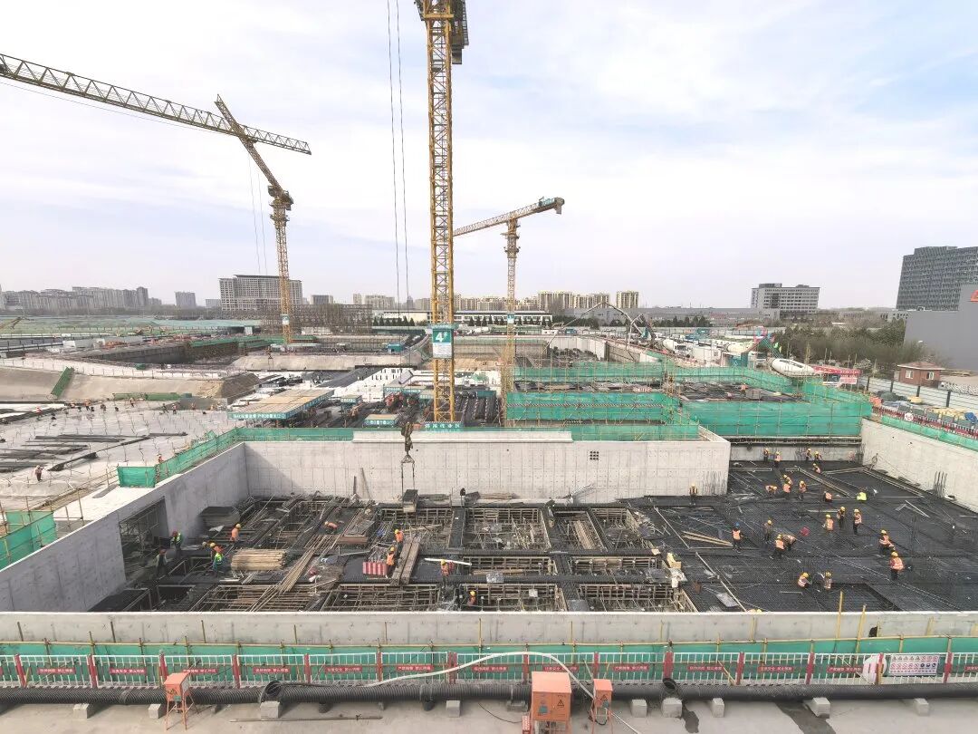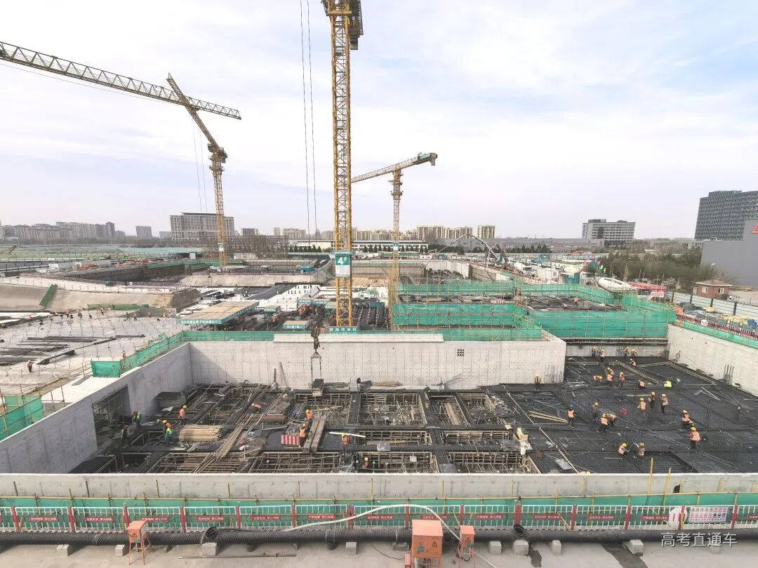 北京工业大学房山新校区(一期)施工现场,各类施工机械有序运作,工人加紧推进地下室结构施工,现场施工节奏紧凑、进展稳步。