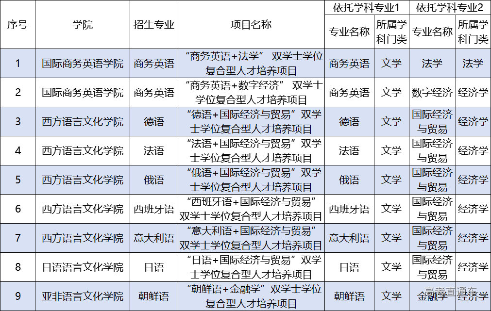 为提升小语种专业学生的社会竞争优势,广外进一步深化小语种人才培养特色,为学生配备最强语言师资力量,接触“原汁原味”的小语种教学环境;实行“多语种+专业”的人才培养模式,培养复合人才。今年,学校获批“德语+国际经济与贸易” “法语+国际经济与贸易” “俄语+国际经济与贸易” “西班牙语+国际经济与贸易” “意大利语+国际经济与贸易” “日语+国际经济与贸易”“朝鲜语+金融学”7项“小语种+专业”双学士学位复合型人才培养项目,培养一批高素质复合复语国际化人才。目前,这些项目均于今年通过高考招生。