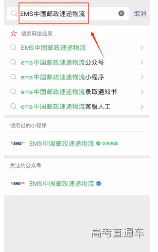 第一步:微信搜索“EMS中国邮政速递物流”小程序;