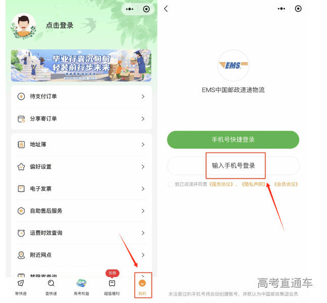 第二步:进入小程序,在“我的”选项处登录高考预留手机号;