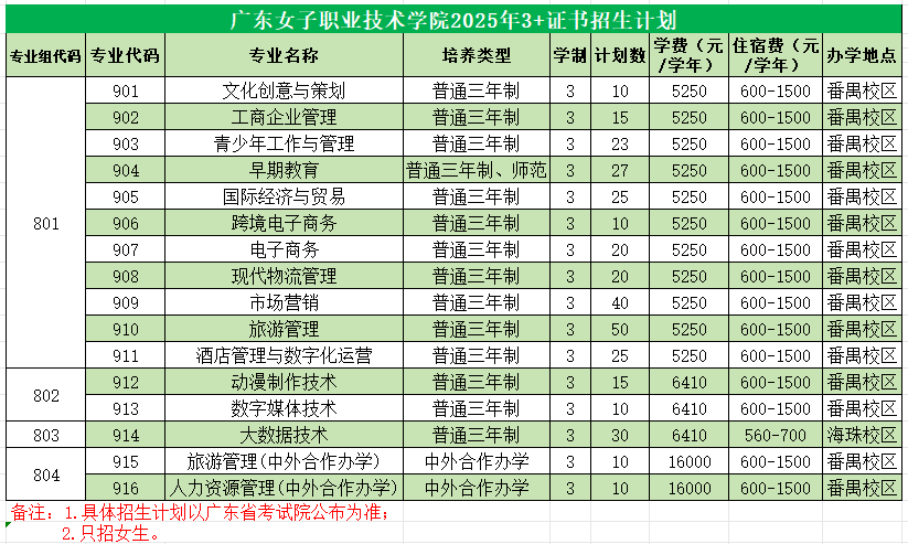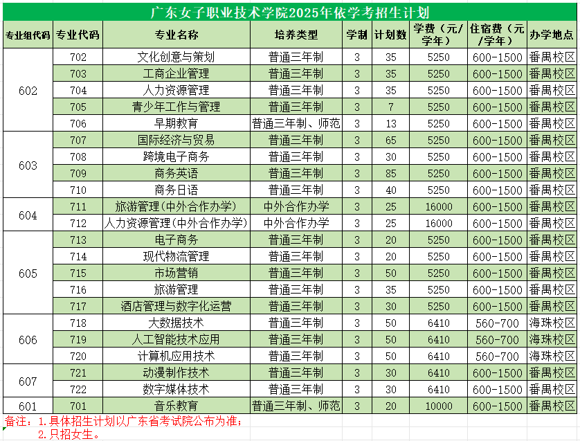 以上计划最终以广东省教育考试院公布为准,只招女生,欢迎广大考生报考。