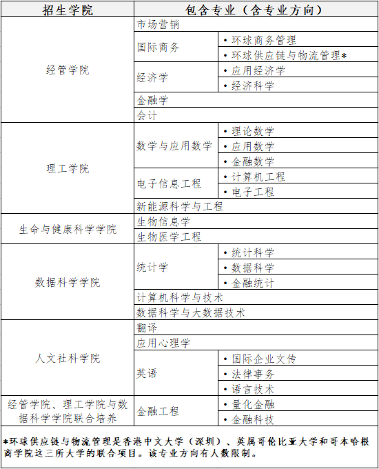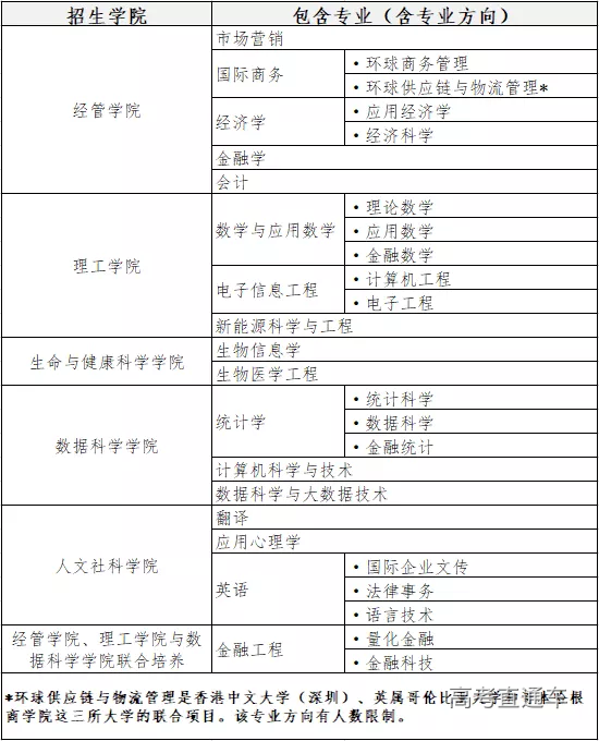 经教育部批准,香港中文大学(深圳)2020年各学院设立的本科专业包括: