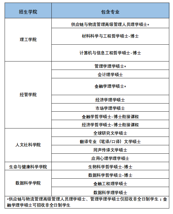 经教育部批准,香港中文大学(深圳)2020年各学院设立的研究生专业包括: