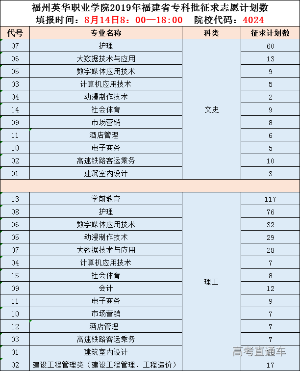 (具体征求志愿专业计划以福建省教育考试院公布为准)
