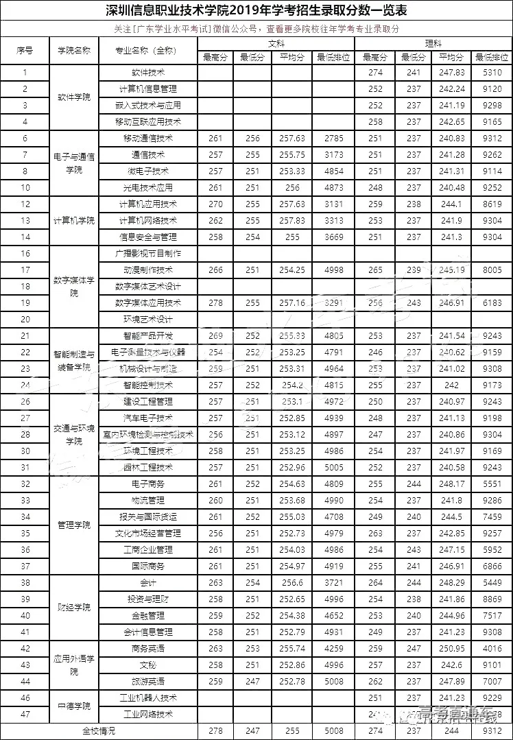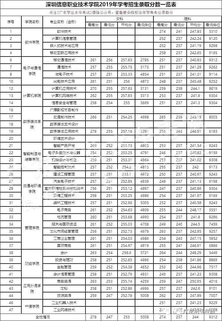 深圳信息职业技术学院2019年学考录取分专业录取分数线