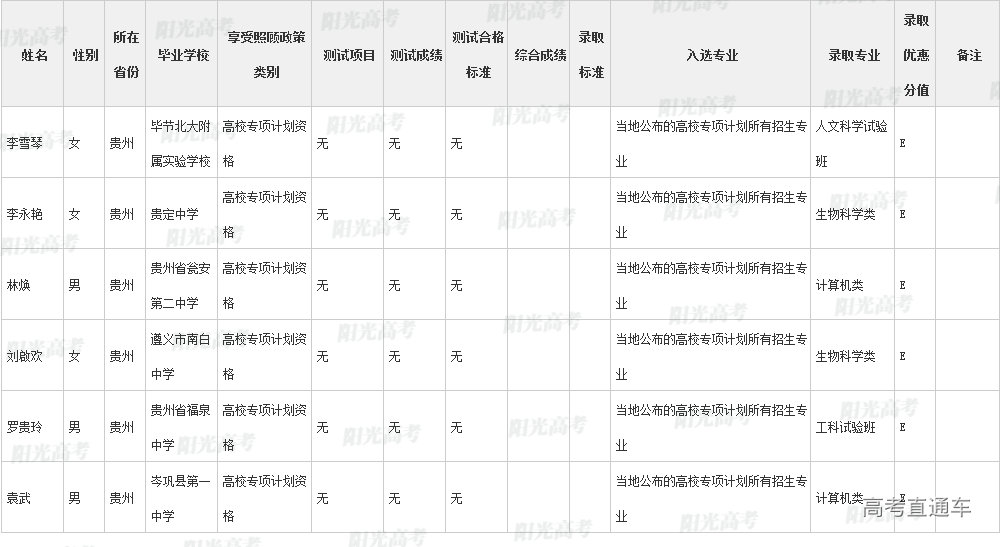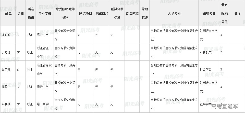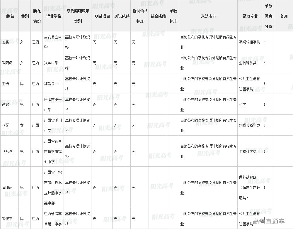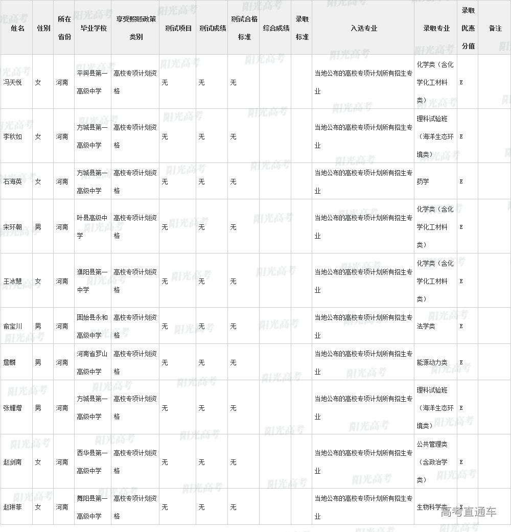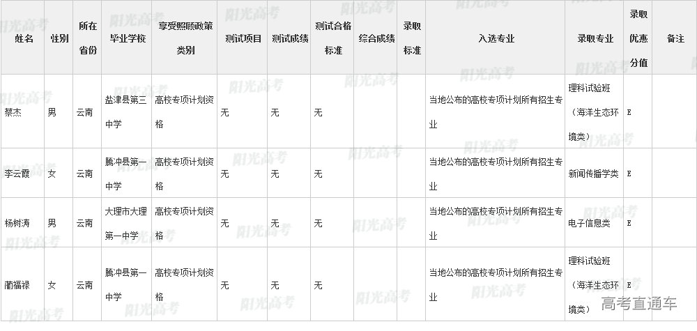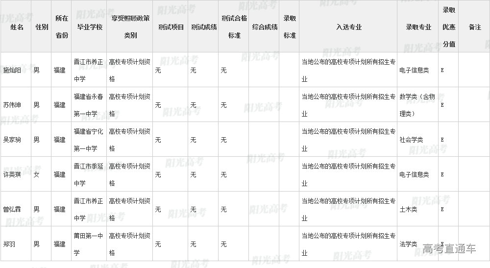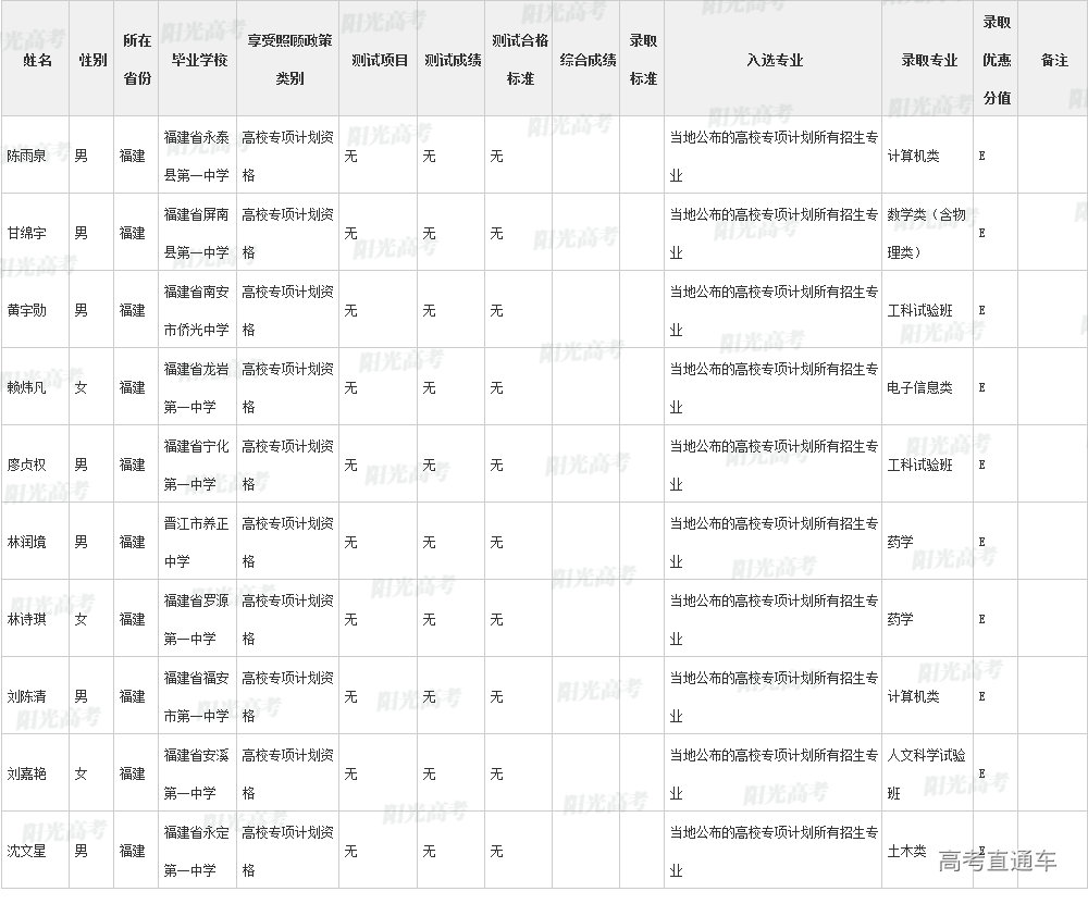 厦门大学2022年高校专项计划各省录取名单