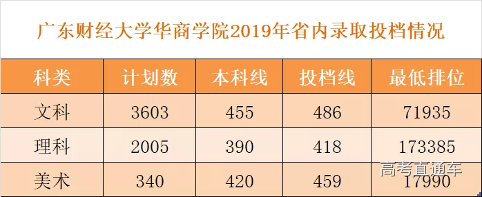 从投档情况看,广东财经大学华商学院生源充足,普通文理类在本科院校录取最低分数线上一次性满档,投档线远超本科院校录取最低分数线。 据了解:今年我校文科招生计划数3603人,招生计划数连续多年名列全省所有本科院校第一位。另外根据今年我省理科考生较多的情况,我院今年理科计划安排了2005人。 文科最低投档线:486分,超过本科院校录取最低分数线31分,最低排位71935。 理科最低投档线:418分,超过本科院校录取最低分数线28分,最低排位173385。 从专业志愿看:我校的省级重点学科,财经、商科、语言、计算机等特色专业深受考生“热捧”,其中省级重点学科会计学专业、网络与新媒体和新闻学,以及汉语言文学、英语、经济与金融、学前教育、广告学、工商管理、软件工程等特色专业的第一志愿人数均远超原招生计划数。而今年新开设的工商管理、数据科学与大数据技术等专业也受到众多考生的青睐。 据悉,我校积极创新国际化办学模式,不断提升学生语言能力,国际化办学特色得到考生和家长的认可。今年有不少考生热衷我校的国际班、双语班和海外创新班。 截止发稿前,华商学院招生录取工作人员正在加班加点、紧锣密鼓地进行录取分档、录取阅档等工作,阅档后将拟录取名单提交省招办复核,在省招办复核通过后马上向社会公布录取结果。 预计7月19-20日公布录取结果,请广东省考生和家长关注广东财经大学华商学院招生办官微或招生信息网,小编在录取现场第一时间为考生报道最新、最权威的录取动态。