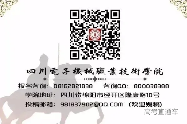 各位考生: 为满足广大考生的就读需求,根据《四川省教育考试院关于做好2020年普通高等学校专科层次补录工作的通知》川教考院〔2020〕68号文件精神,我院将开展补录工作。现就有关事宜公告如下: 一、招生代码:5653 二、补录对象: (一)普通专科批补录志愿对象为录取控制分数线(文科150分,理科150分)上未被录取的考生。 (二)对口招生补录志愿对象为相应专业类录取控制分数线(各类别140分)上未被录取的考生。 三、志愿填报 志愿填报时间为2020年10月19日9:00至21日12:00,符合条件的考生应在规定的时间内登录填报志愿网址http://zj.sceea.cn,或使用考试院“考生助手”手机客户端APP填报志愿。 四、录取时间 2020年10月22日至23日(具体时间以四川省教育考试院公布为准)。 五、补录专业及计划 六、咨询电话 0816-2821838、2821216 四川电子机械职业技术学院招生处 2020年10月14日 学院掠影 四川电子机械职业技术学院是经国家教育部审批,四川省教育厅主管,以工学和管理学科为主的全日制普通高等院校,招生纳入国家普通高等学校统一招生计划。 学院位于以“李白出生地,中国科技城”而闻名的四川省第二大城市绵阳。学院规划建设用地814亩,已经建成校园占地近500亩。学院现有全日制普通专科在校生10214人。建有电子信息技术、机械加工技术、经济管理、建筑工程技术等9个实训中心和64个实训(实验)室,建有126个校外实习、实训基地。 学院建立了广泛的社会合作,搭建了良好的服务社会和人才培养平台。与四川长虹、四川九洲、京东方科技集团等国内外知名企业深度合作,与省内外984家企事业单位建立了合作关系。学院就业优势突出,历届毕业生就业率超过95%。办学28年来已累计为社会培养输送了各类技术技能人才5万余人。 来源/ 学院招生处、新闻中心