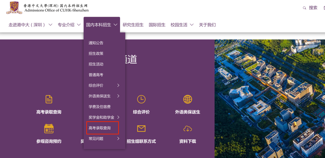录取查询系统登录方式:招生网入口(https://admissions.cuhk.edu.cn/)