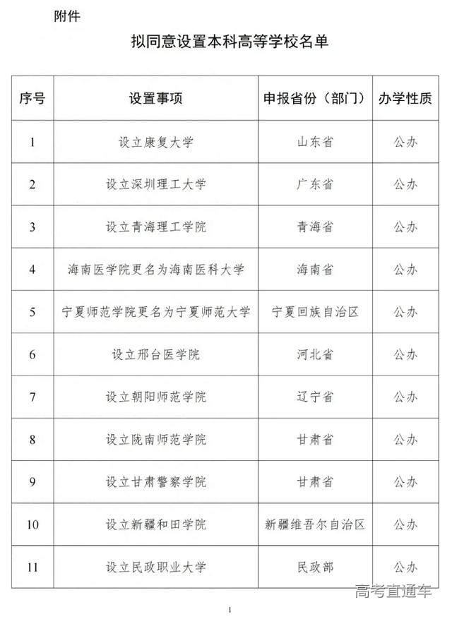 在教育部公示的两批学院更名大学的名单中,2023年6月15日,黑龙江省教育厅公示拟同意牡丹江医学院更名为牡丹江医科大学;2023年8月7日,广东省教育厅公示拟向教育部申报的佛山科学技术学院更名佛山大学;2023年3月20日,山东省教育厅公示拟按程序推进康复大学正式去筹建校;2023年1月30日,广东省教育厅公示拟向教育部申报设立深圳理工大学;2023年10月19日,海南省教育厅公示申报海南医学院更名海南医科大学;2023年9月11日,宁夏教育厅公示宁夏师范学院拟更名为宁夏师范大学。从这些高校设置来看,都是2023年通过省级公示的高校,无2024年公示高校。福耀科技大学在2024年1月29日才通过省级公示,今年来不及招生也是属于正常情况。
