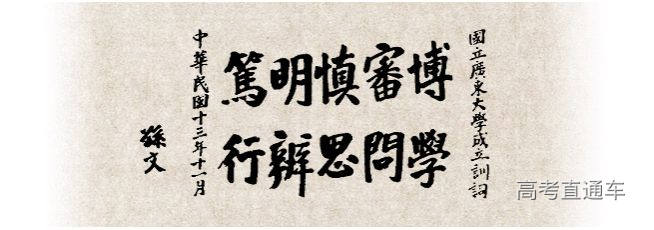 中山大学校训是孙中山先生于1924年11月11日在广东大学举行成立典礼时亲笔题写的。校训词为“博学 审问 慎思 明辨 笃行”。