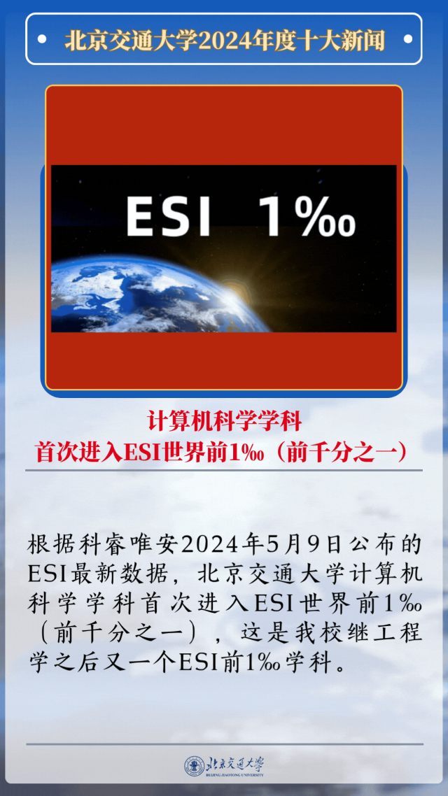 计算机科学学科首次进入ESI世界前1‰(前千分之一)