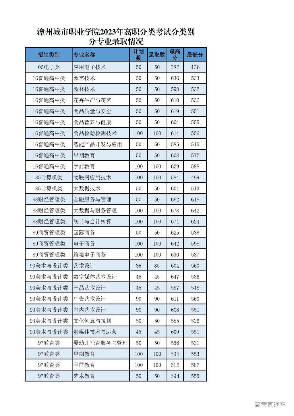 漳州城市职业学院2023年高职分类考试分类别分专业录取情况