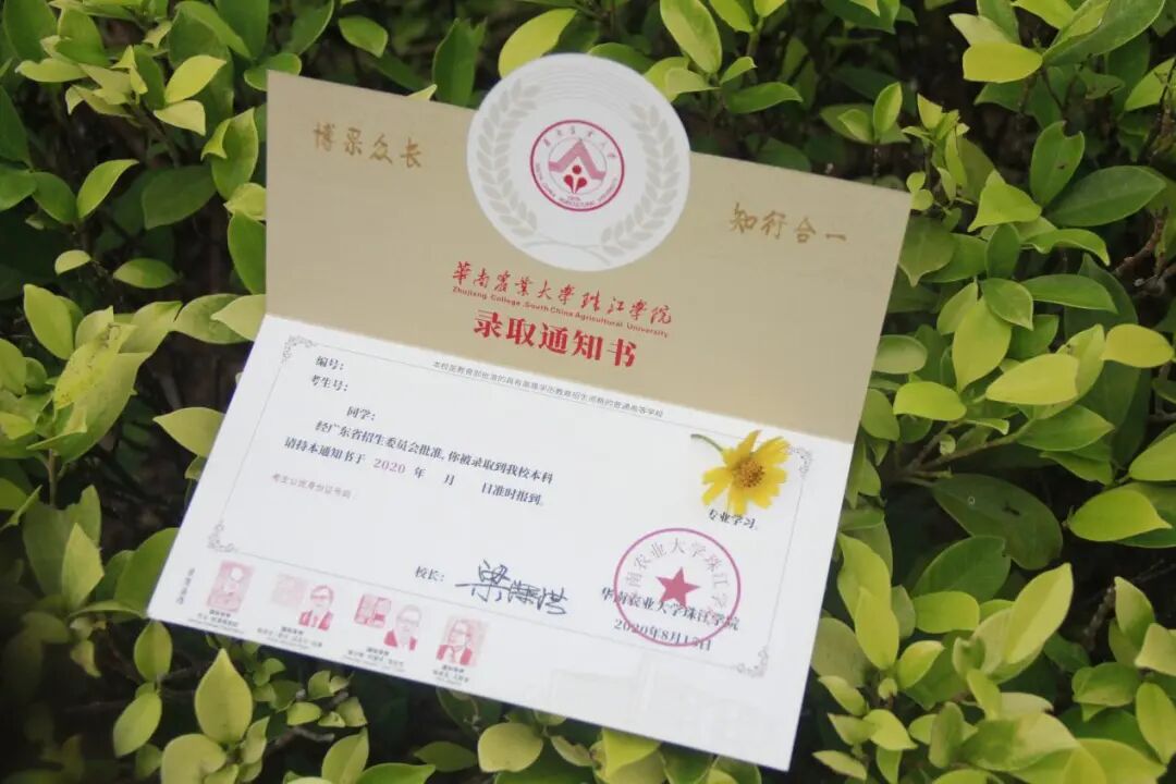 精心准备 今年我校精心为各位新生打造新生大礼包, 这里有开启四年大学的钥匙; 有指引开启校园生活的指南, 更有华珠对你的祝福和期盼。 匠心制作 打开录取通知书 是校长梁深洪亲手刻制的章 将篆刻艺术与学校国际导师的人像和名字融合 体现我校走国际化路线 中西方文化相融合 还有我校特色性标志建筑的全貌展现在每一位学子面前 饱含温情 华珠人专属帆布包 百搭、实用、简洁 印着i爱心华珠 代表着每个华珠人 华珠人专属U盘 特别刻上我校名字 更具意义 留下我们特别的印记 特殊的年份 录取通知书的发放 也有着特别的安排。 邮寄到人 贯彻国家政策, 由EMS邮寄 保证能第一时间收到录取通知书 录取通知书是努力奋斗回报的见证 承载着非凡的意义 多少学子正翘首企盼接收的那一刻 收到高校录取通知书的喜悦 应该由学生本人在第一时间来享受 人生有很多个四年,但如果是大学这四年,那可能是决定你人生未来的四年。因为你的眼界、你的青春、你的三观等等要求都会在那四年慢慢形成。大学,隐藏着所有青春,也会给你们无穷的力量使你散发光芒。愿你手持录取通知书,在华珠乘风破浪~