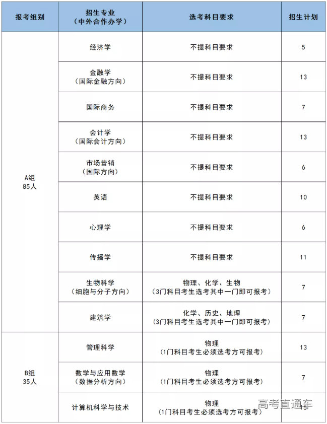 具体专业组别、招生专业、选考科目要求及计划数如下表: