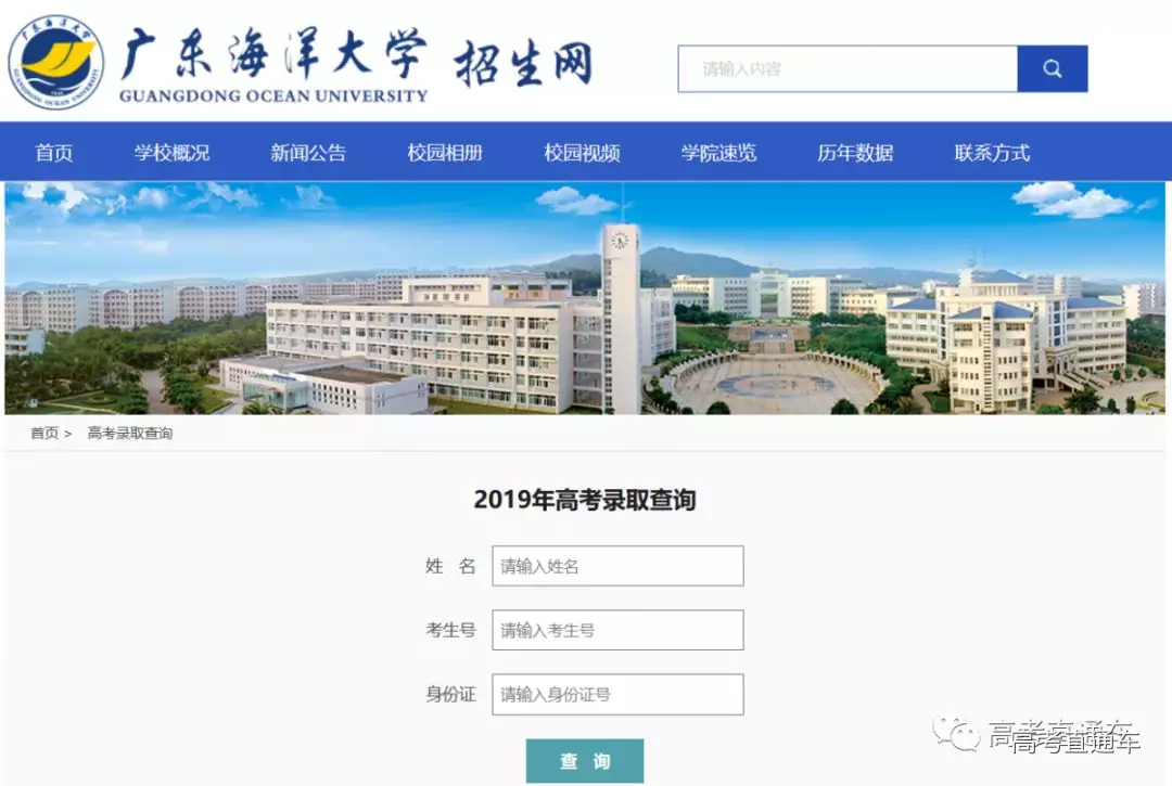 广东海洋大学2019年高考录取查询入口,点此进入。