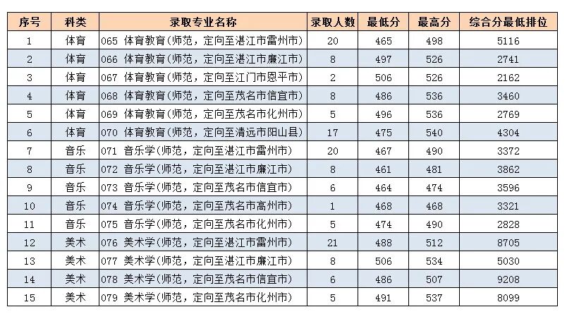 广东省2020年本科提前批教师专项计划文理类于8月11日下午正式投档,我校的公费定向师范生文理类专业投档情况具体如下:文科类计划195人,投档205人,录取195人,录取最高分557分(排位为11311),高分优先投档线上13人,录取最低分463分;理科类计划125人,投档129人,录取125人,录取最高分578分(排位为33158),高分优先投档线上18人,录取最低分440分。