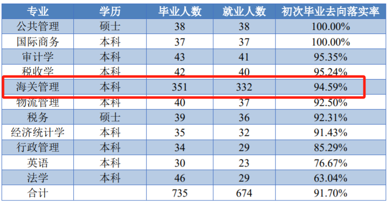 学校从2019届起的就业质量报告就没有透露海关管理专业公务员考取数量。