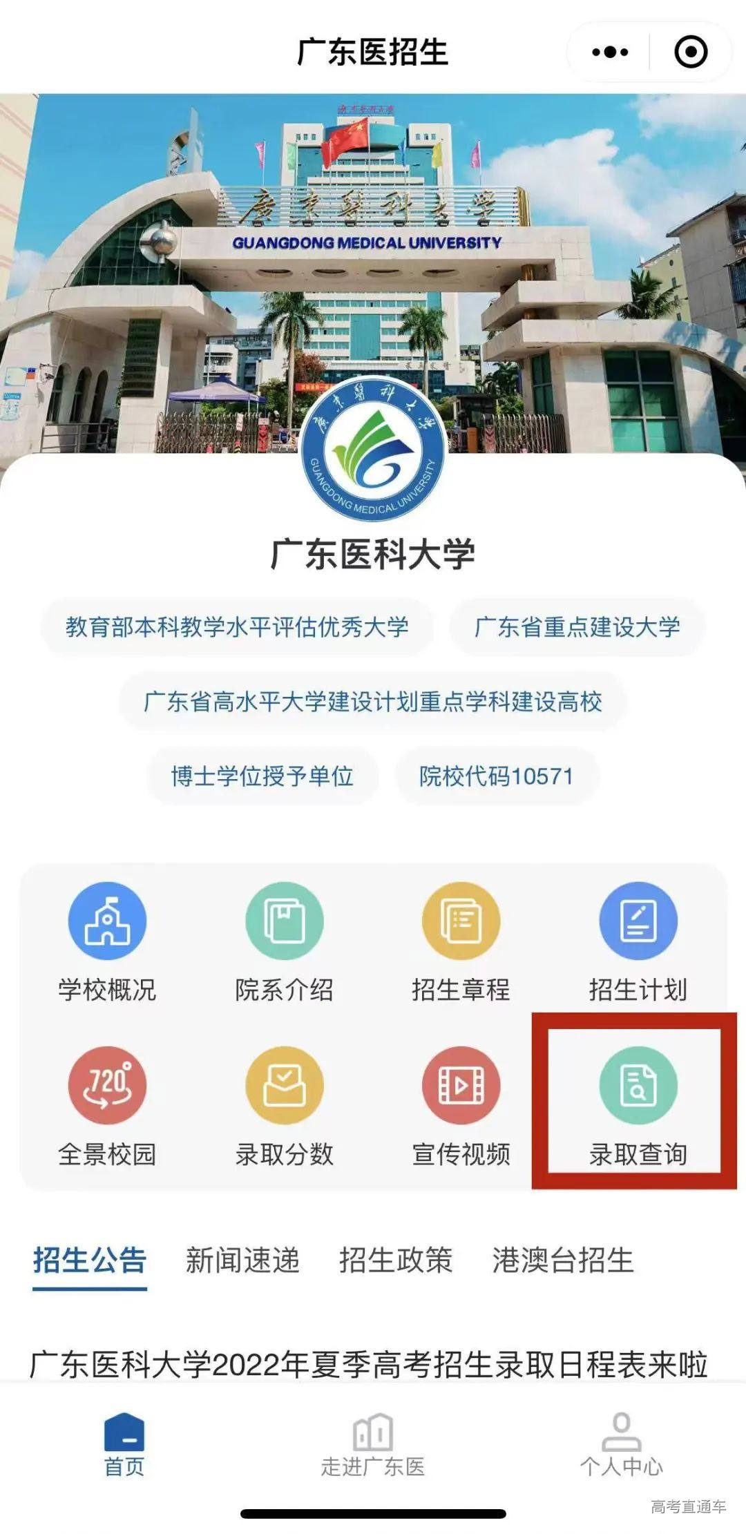 我校2022年上述省份第一批次录取结果已在学校招生官网上公布,请各位考生自行登陆网站"http://zs.gdmu.edu.cn/" 查询,也可以通过“广东医招生”小程序查询录取结果。 更多信息请关注招生官方微信公众号:广东医科大学招生办公室。学校招生办不接受电话查询! 广东医科大学招生办公室 二〇二二年七月二十三日 查询结果攻略 一、学校官网查询 二、广东医招生小程序查询内蒙古 理 569 475 427 吉林 理 550 516 488 河南 理 594 527 509 贵州 理 575 535 451 安徽 理 591 526 491 云南 理 619 592 520 江西 理 564 559 509 四川 理 624 600 515 黑龙江 理 551 487 429 广西 理 578 529 475