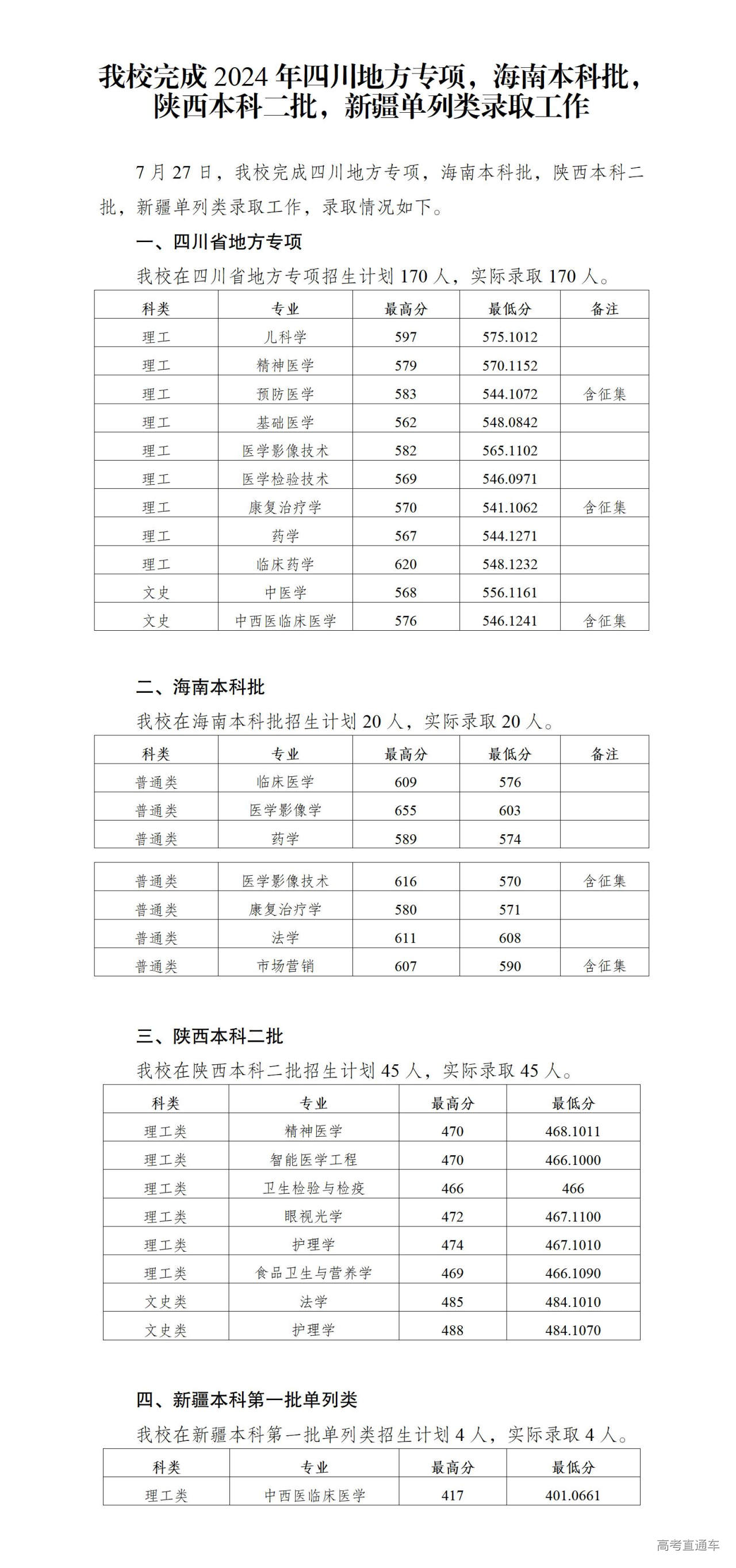 西南医科大学2024年高考录取动态(更新至7月28日)