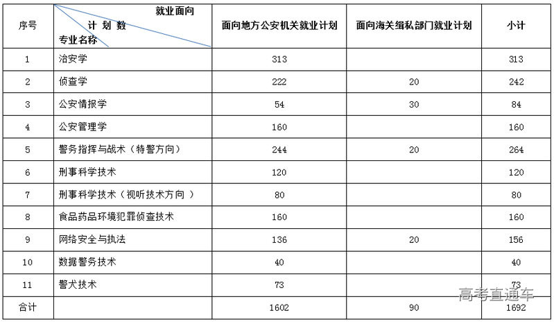 2.面向海关缉私部门就业计划中含9名定向艰苦边远地区单位工作的招生计划,限招男生。其中: