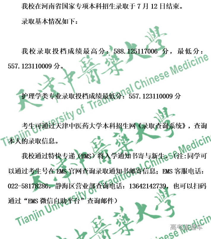 天津中医药大学2023在河南省国家专项本科招生录取情况