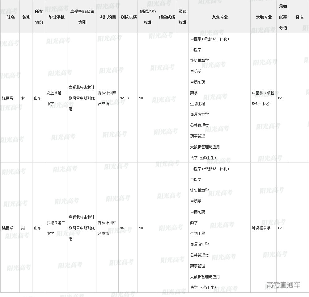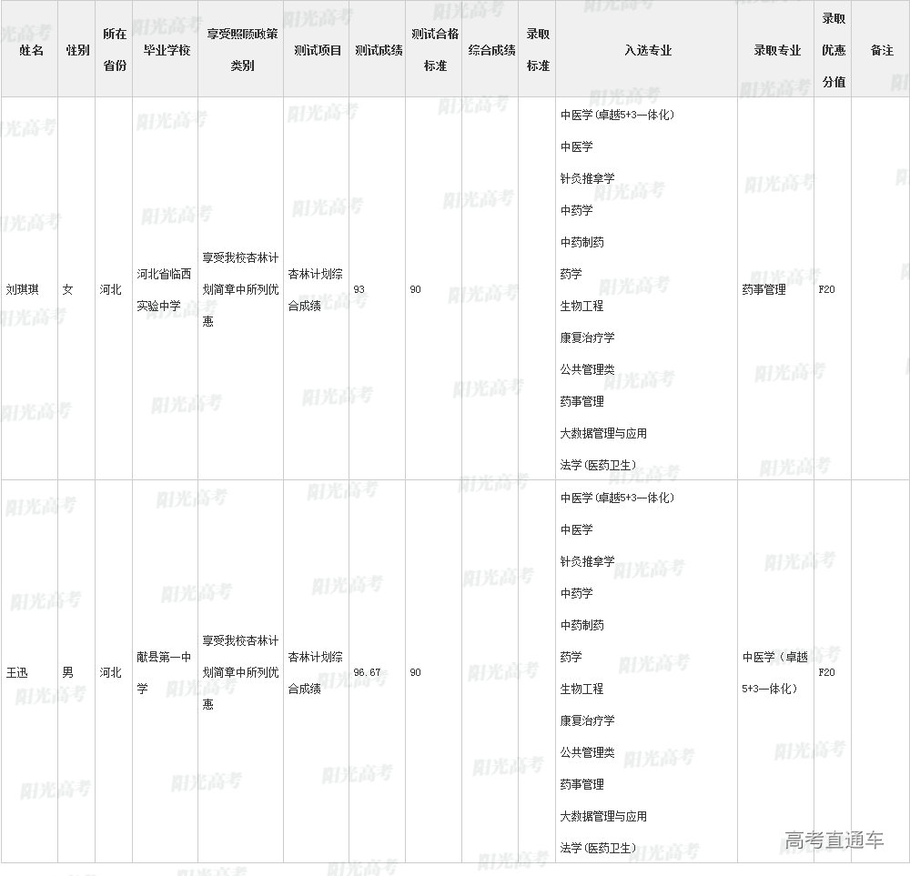 ②入选考生达到生源所在省份一本批次录取控制分数线即予以录取的,以“C”标注;也可是"C"+"数字",表示一本批次录取控制线上多少分录取,如C20表示一本批次录取控制线上20分录取;