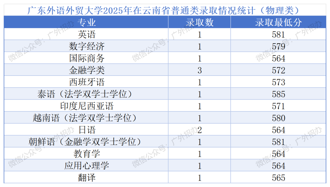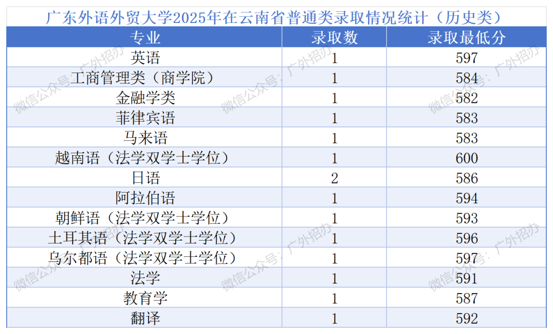 广东外语外贸大学2026年在云南高考各专业录取分数线