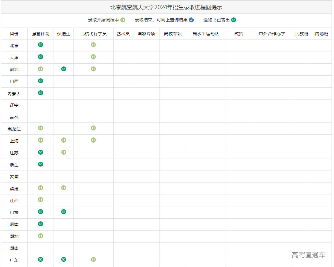 北京航空航天大学2024年本科招生网上录取工作已正式开始,由于各省录取进度安排不一,我们将陆续公布录取结果,也请考生密切关注北航招生工作办公室官方消息。