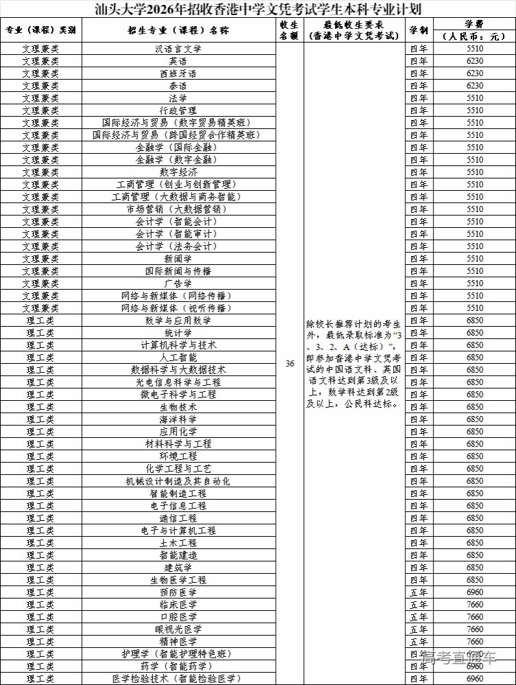 附件:汕头大学2026年招收香港中学文凭考试学生本科专业计划