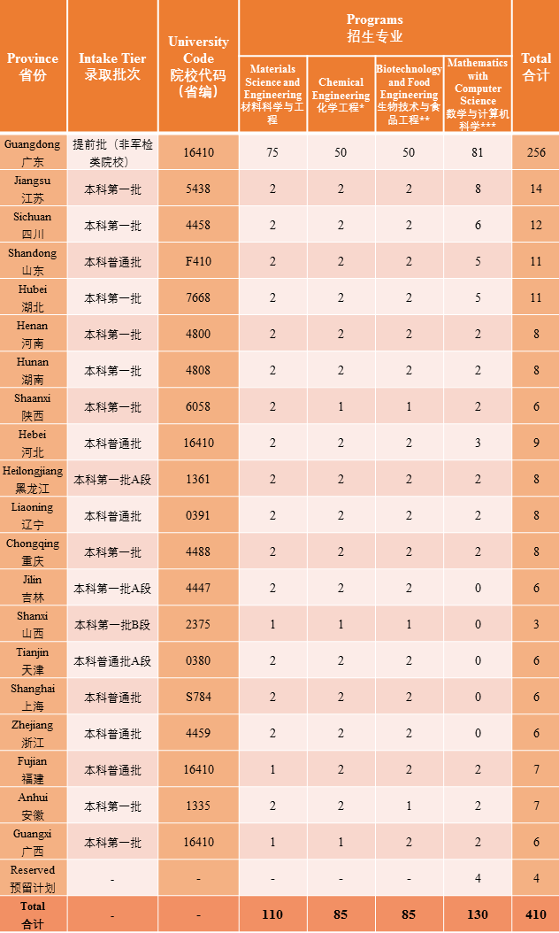 2020年,广东以色列理工学院目前开设的四个专业计划招收410名本科新生: