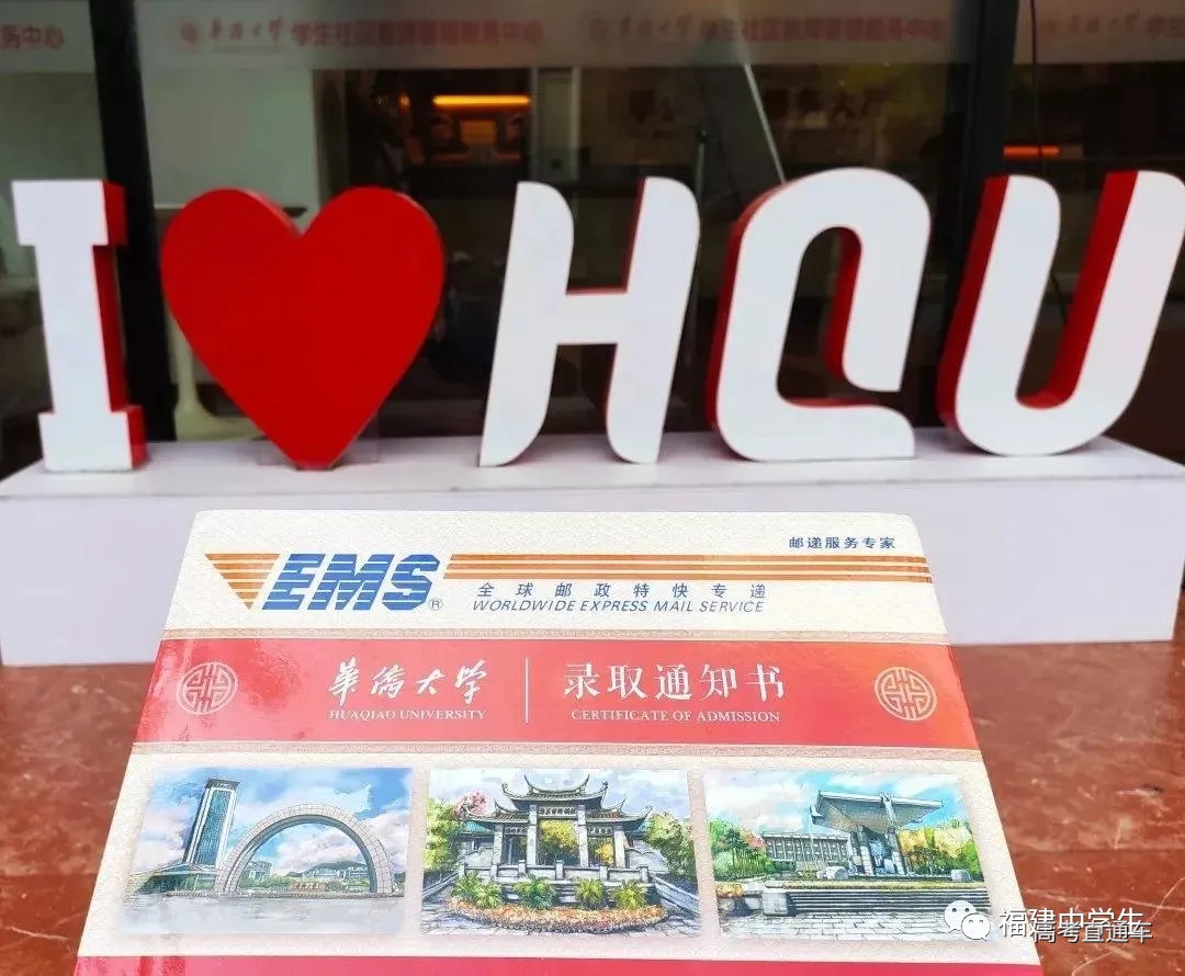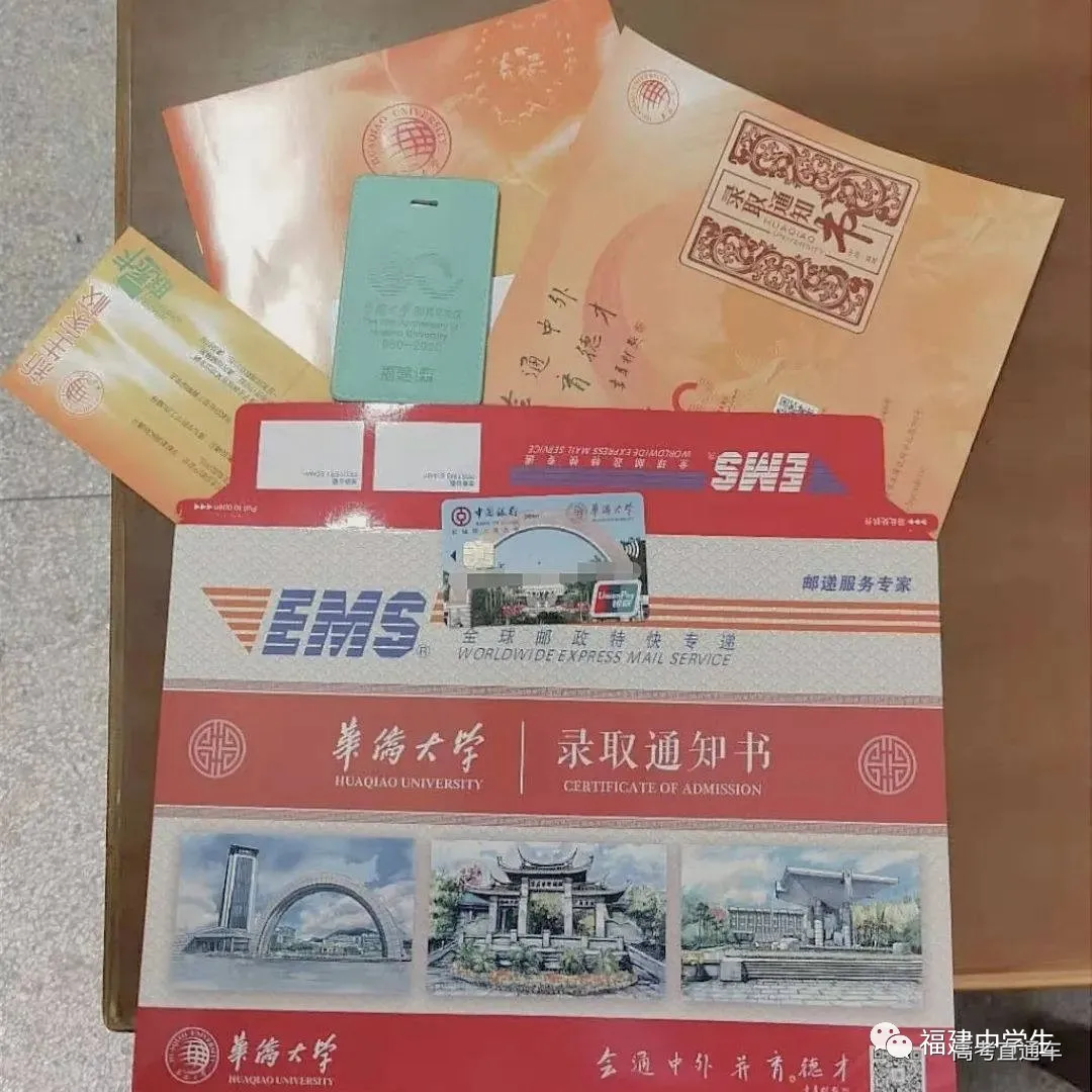 录取通知书信封内装有:录取通知书、中国银行借记卡及密码、2020级入学指南报到注册须知、新生家校联系卡、学生资助政策简介、60周年华大校庆新生行李牌。